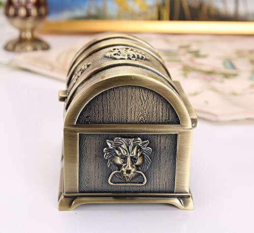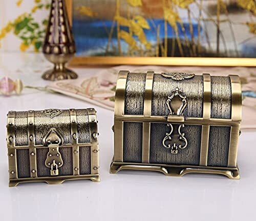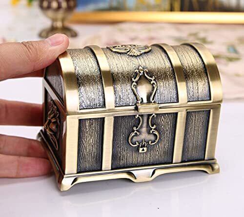 Ansimple アンティーク調 合金製宝箱 合金ボックス ケース 海賊宝箱 収納箱 小物入れ 宝物入れ 宝箱の宝石箱 アクセサリー ヴィンテージインテリア 雑貨 置物
