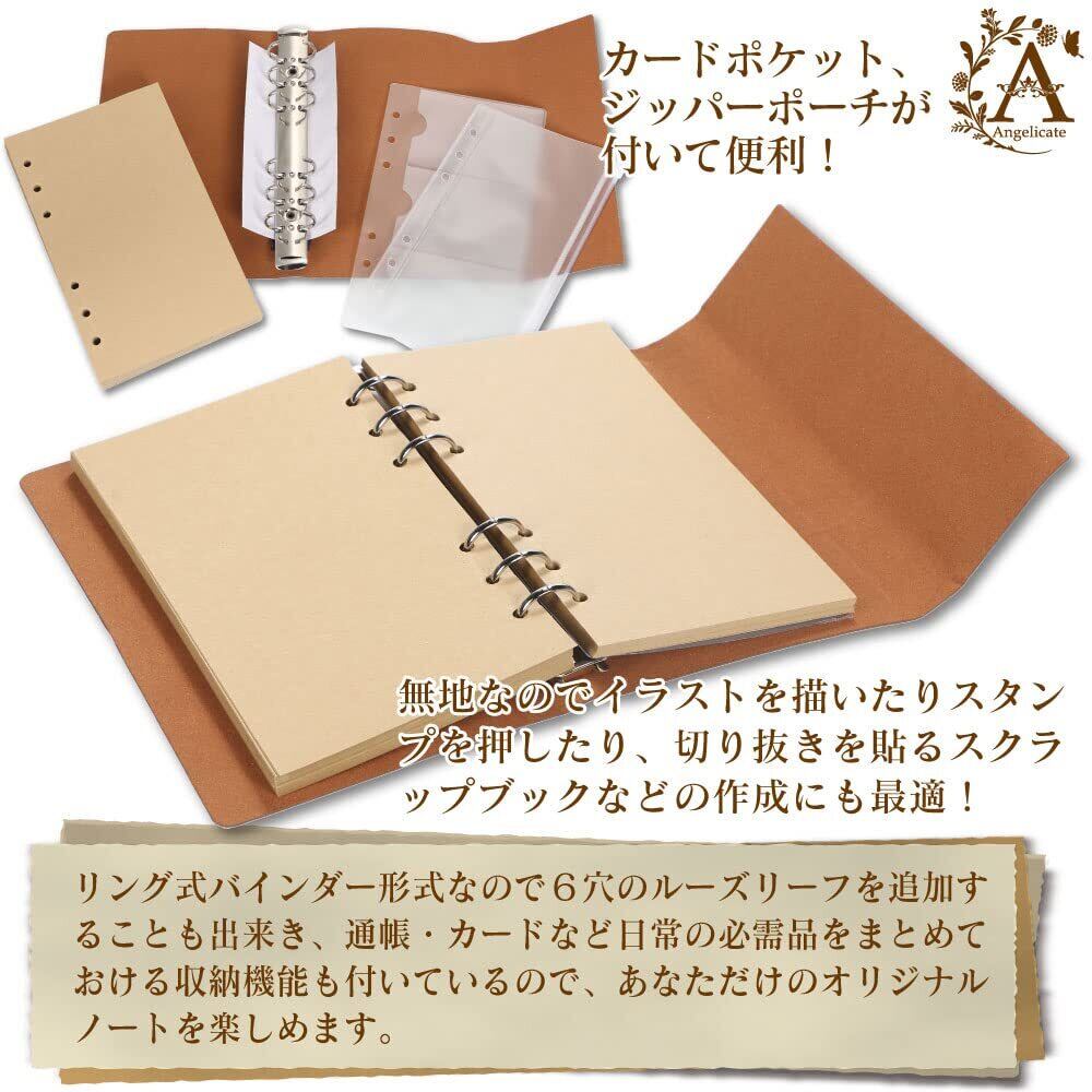【サイズ】A6(約132mm × 188mm × 30mm)【内容】クラフト紙 (90枚/180ページ) カードポケット×1 ジッパーポーチ×1