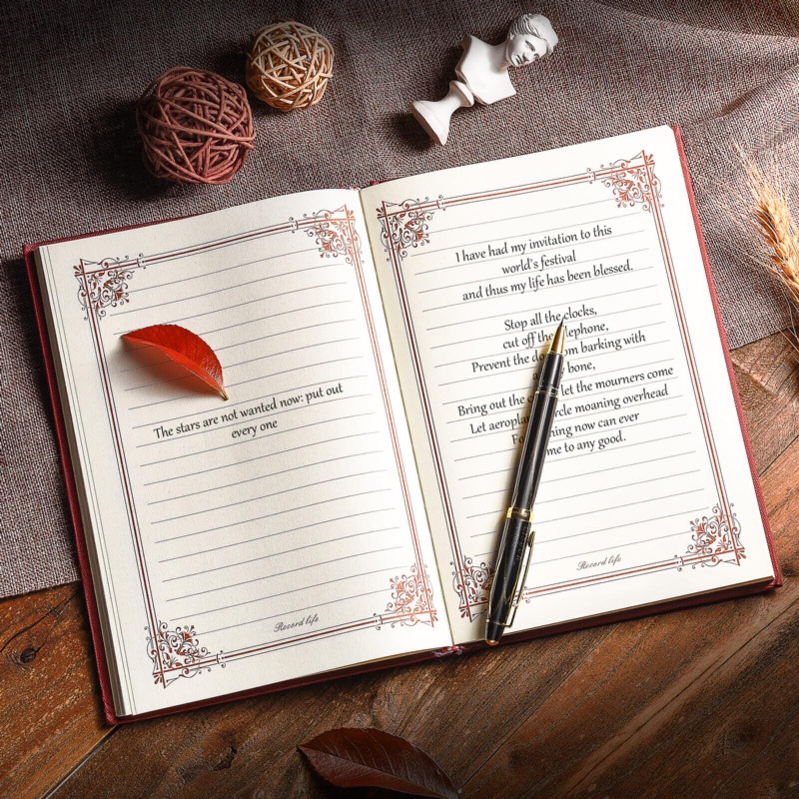 内頁はシンプルな横書き(横罫)で多目的に活用できます。 アンティーク洋書のようにインテリア雑貨としてもおしゃれです。