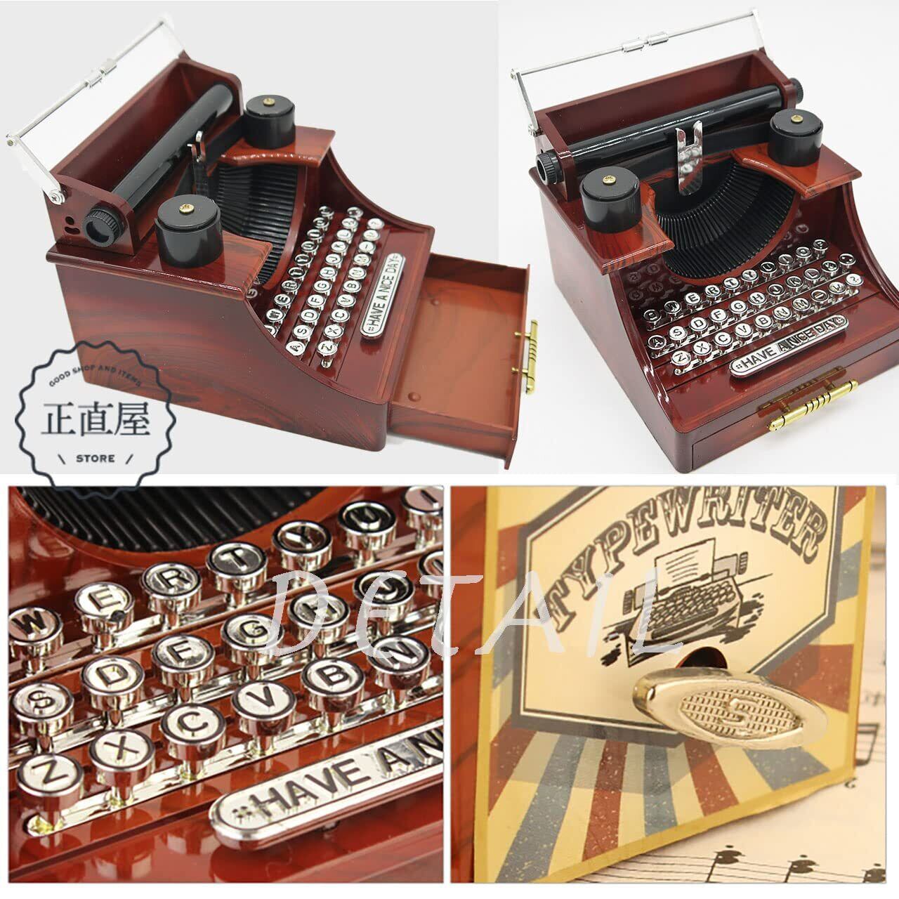 レトロなタイプライターはインテリアにもおすすめです。木目調の模様が特徴的、引き出しを開けるとオルゴールの音が鳴りだします。