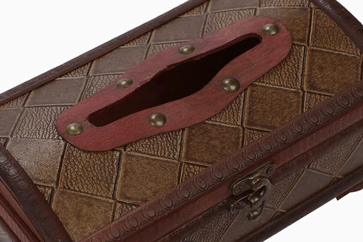 r_planning アンティーク調 木製 ティッシュ ボックス エンボス 格子 レトロ ビンテージ