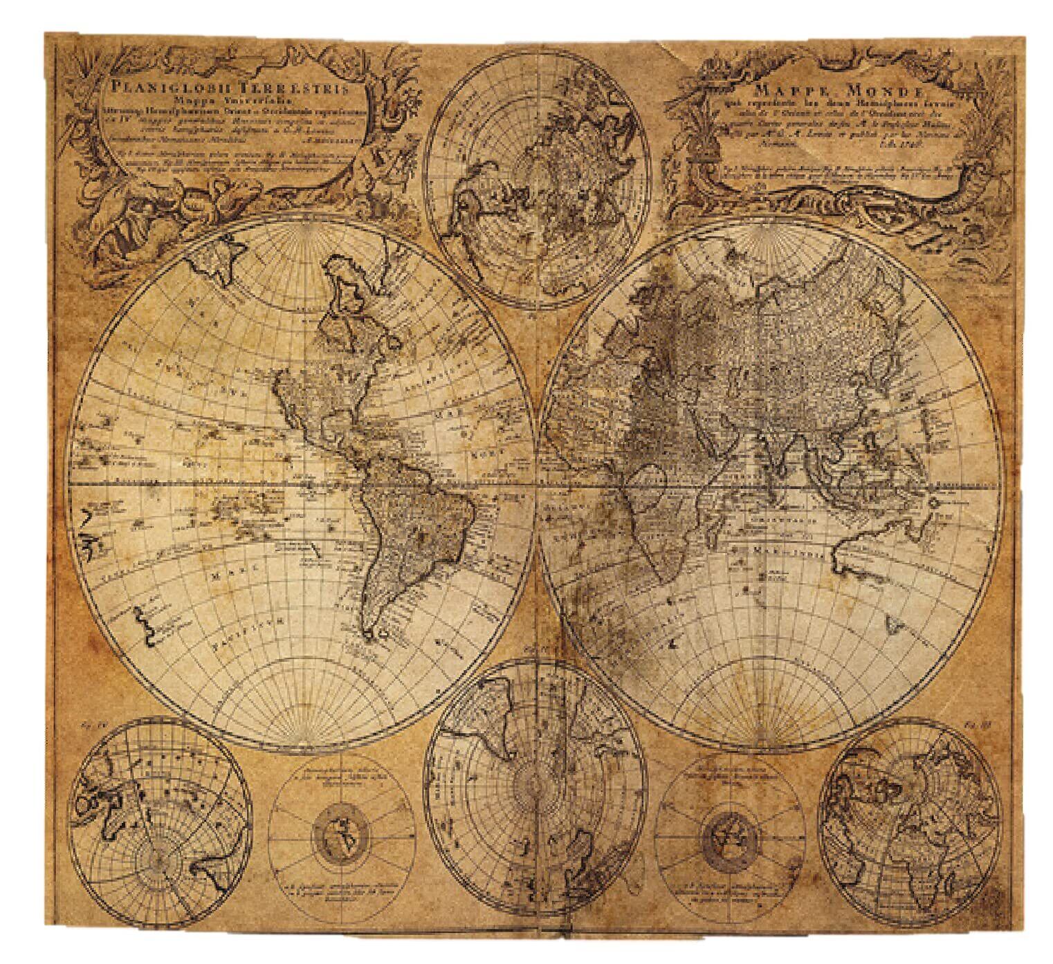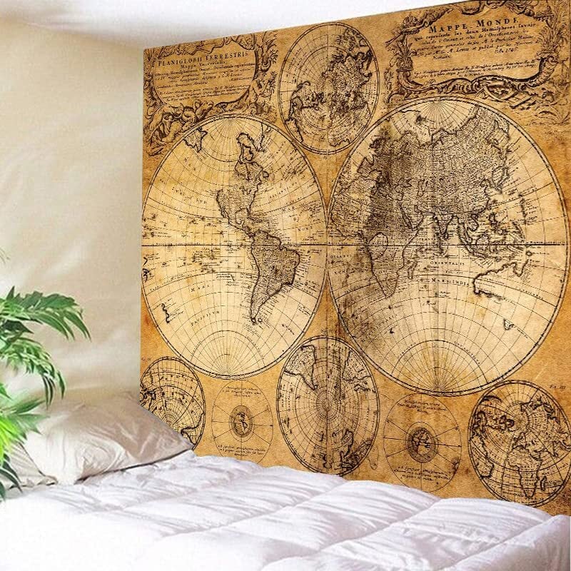 世界地図 ポスター アンティーク マップ ヴィンテージ 壁飾り 布製 ワールドマップ 古地図 (150㎝150㎝)