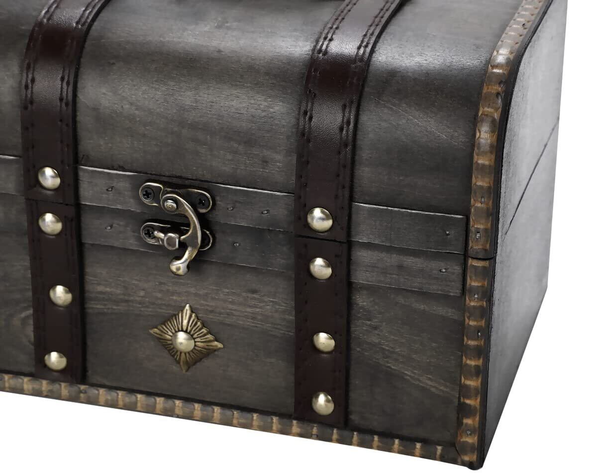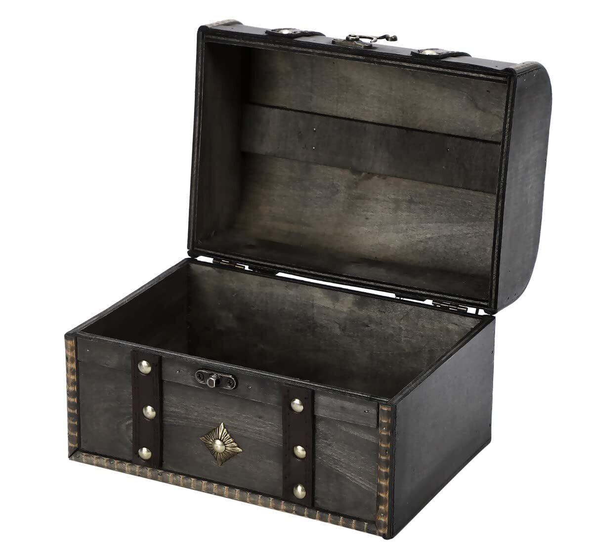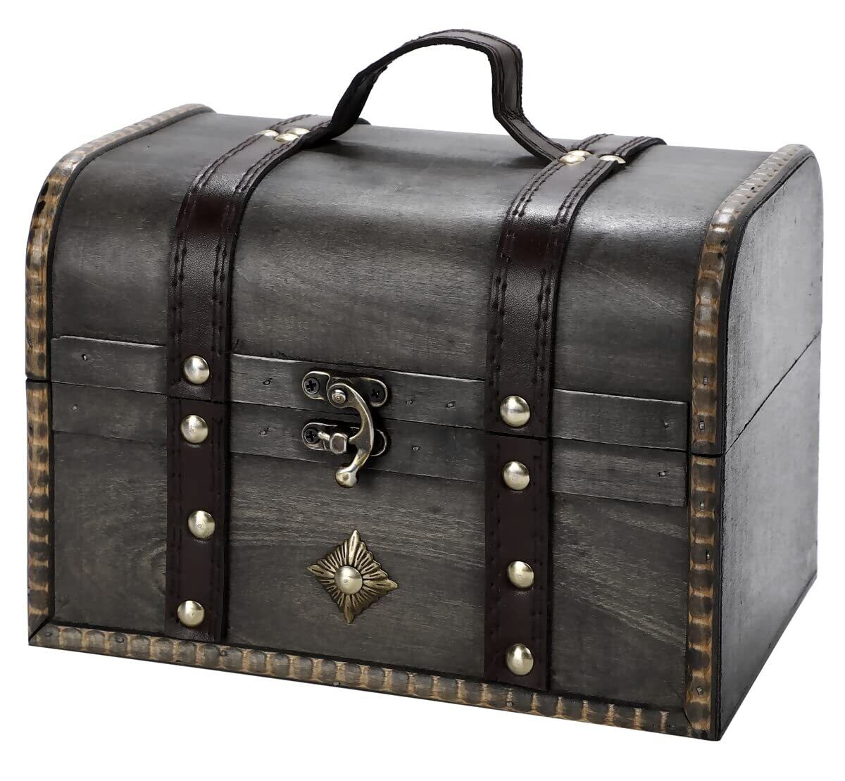 ・アンティーク調でレトロな装飾を施された、宝箱型の木製収納ボックスです。