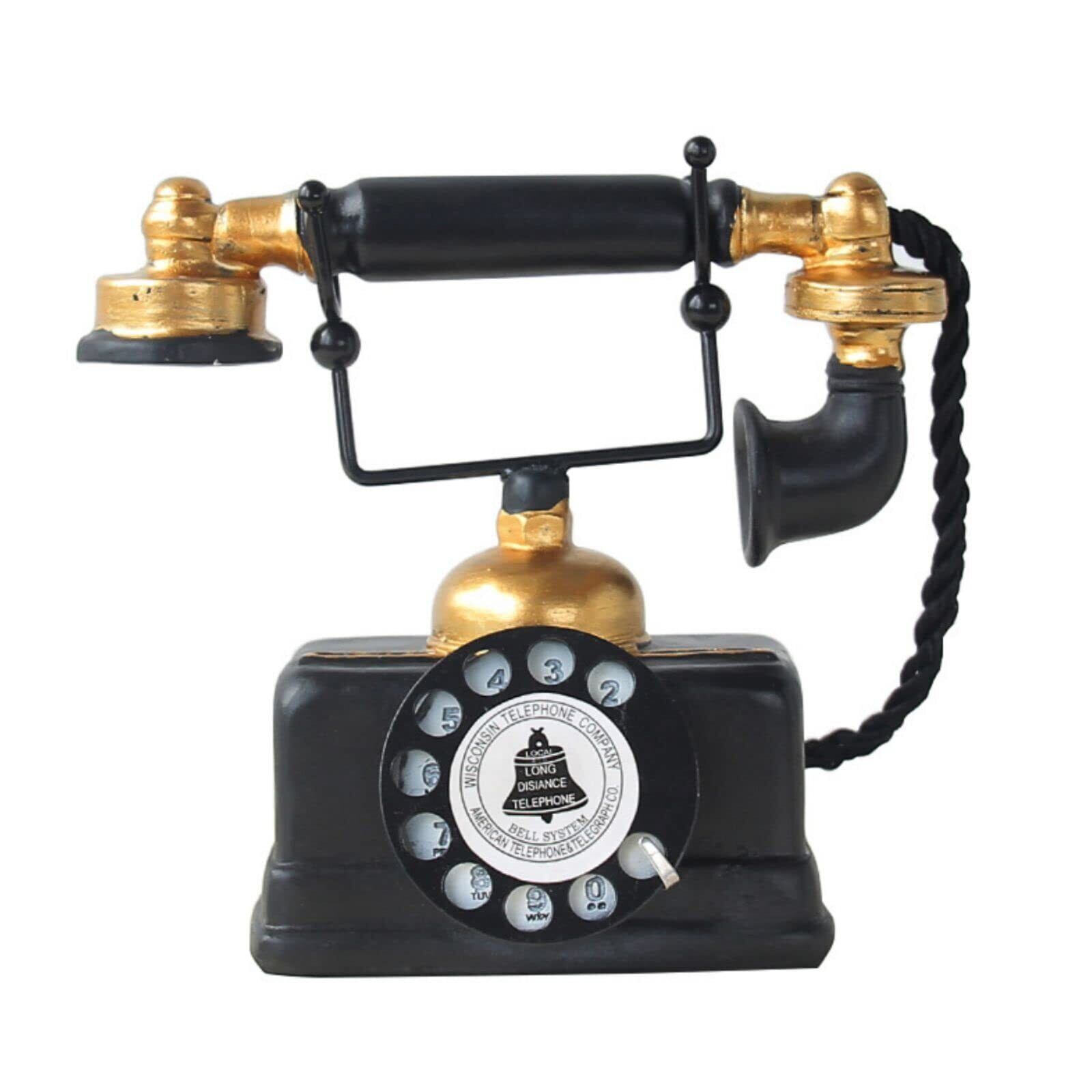 PLEAVIT 電話機 黒電話 インテリア 置物 装飾用 模型 おもちゃ レトロ アンティーク 雑貨 (A)