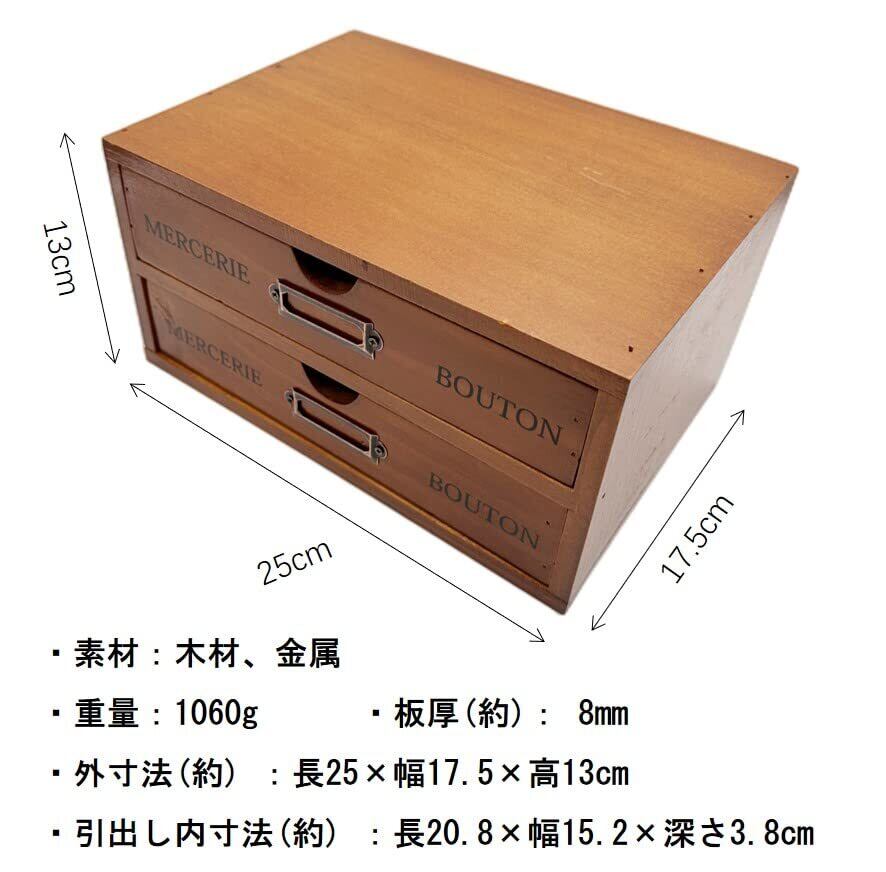 【特価セール】Ansimple ビンテージ風 ナチュラルな 木製 引出し付き 収納ボックス 木箱 木製引き出し 小物整理整頓 机上収納ラック オシャレ雑貨 家庭・事務所・工場・オフィス (2段式引き出し)