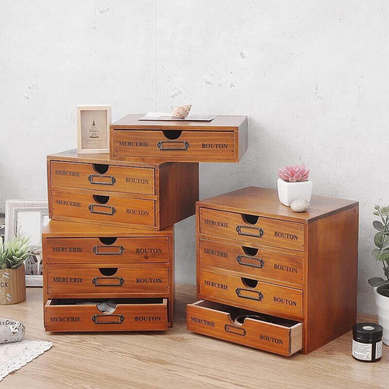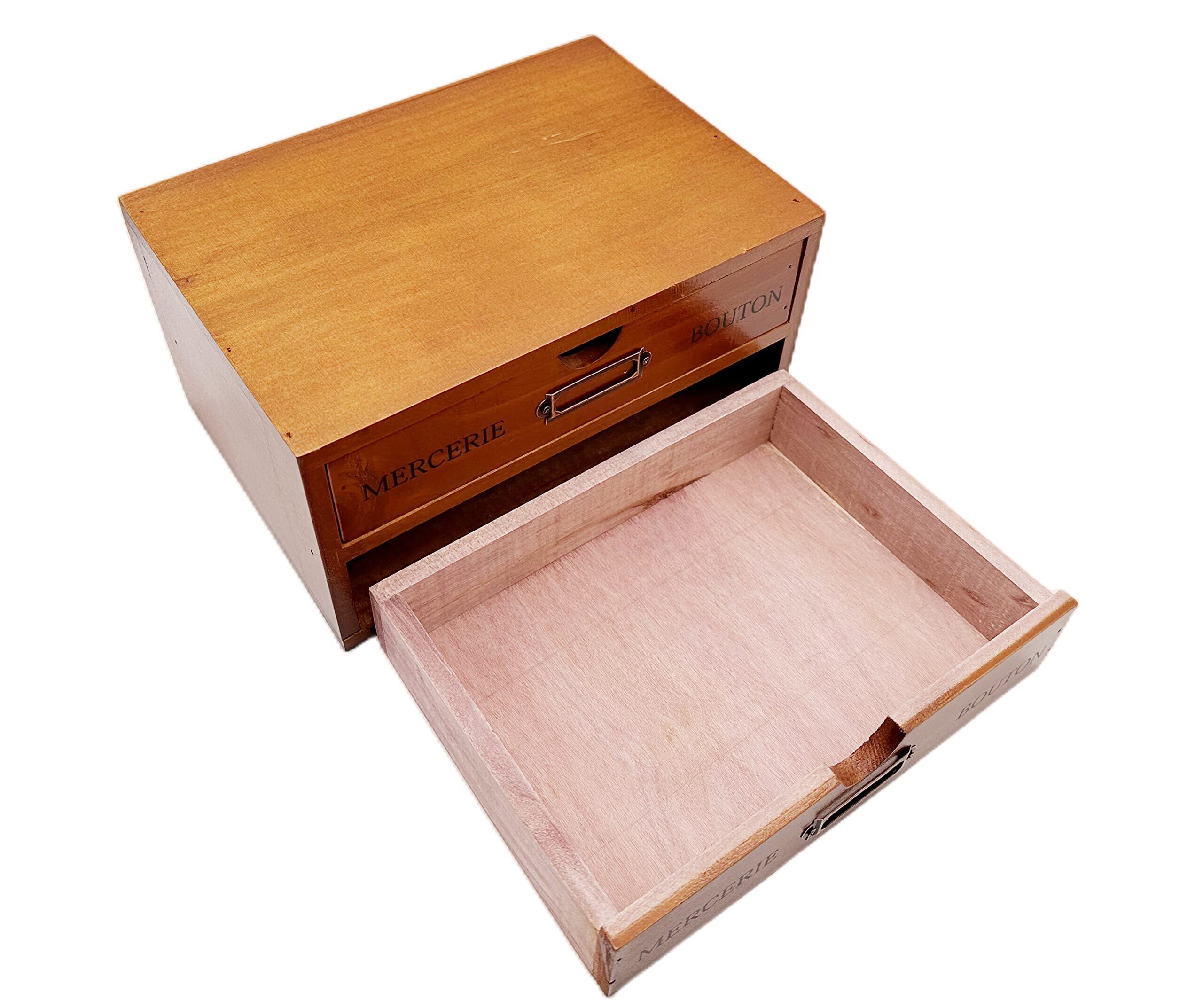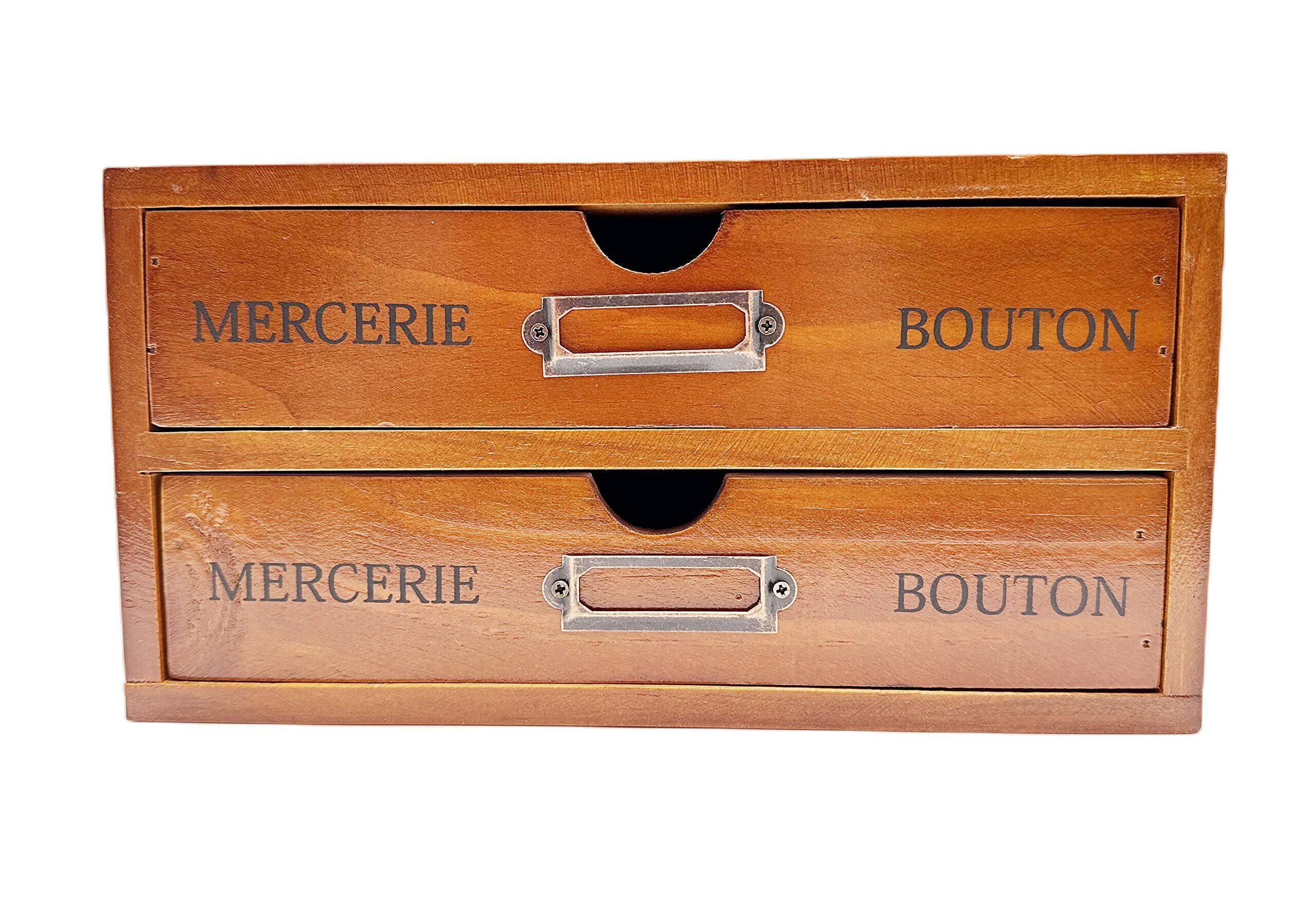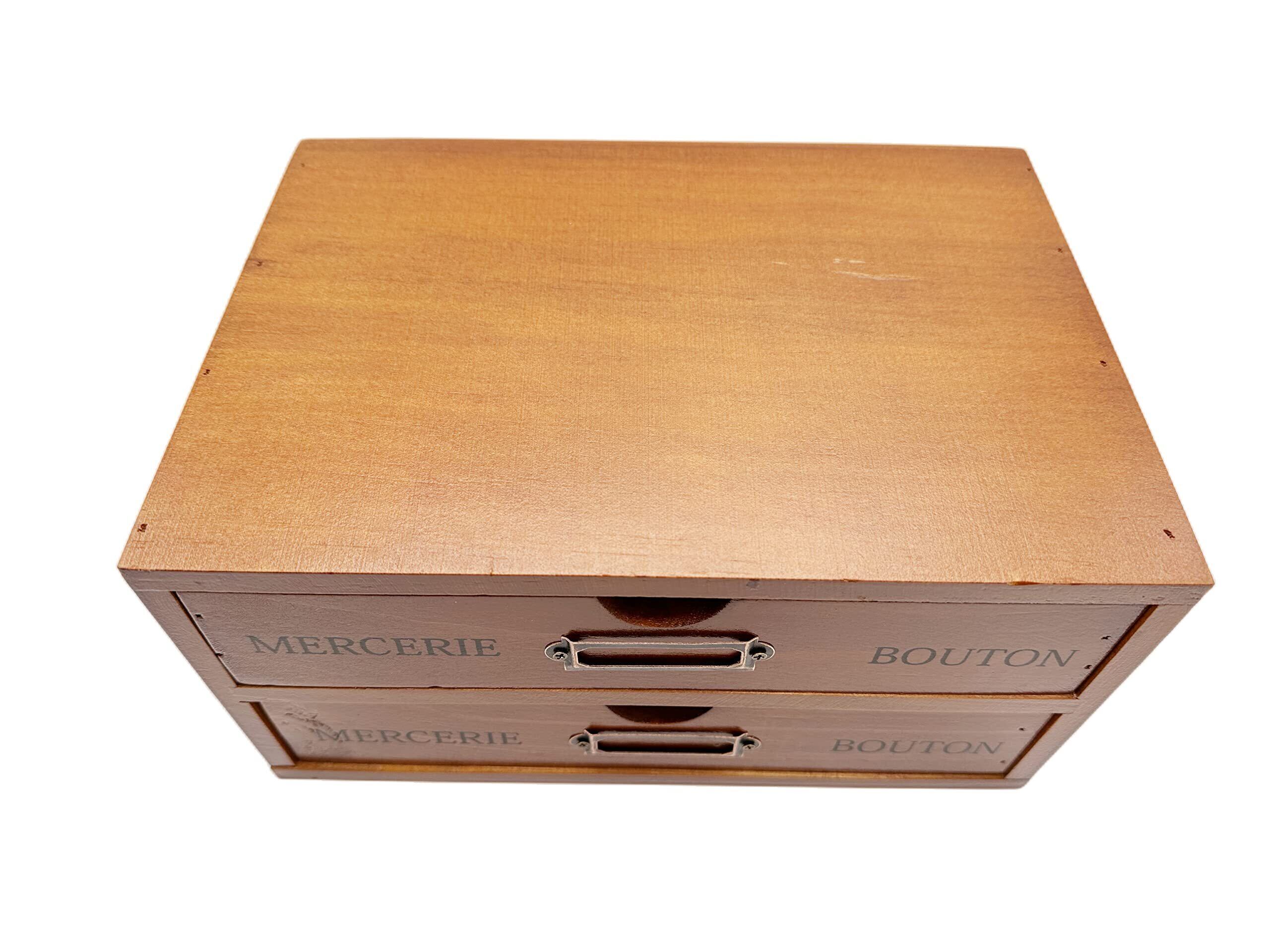 Ansimple ビンテージ風 ナチュラルな 木製 引出し付き 収納ボックス 木箱 木製引き出し 小物整理整頓 机上収納ラック オシャレ雑貨 家庭・事務所・工場・オフィス (2段式引き出し)