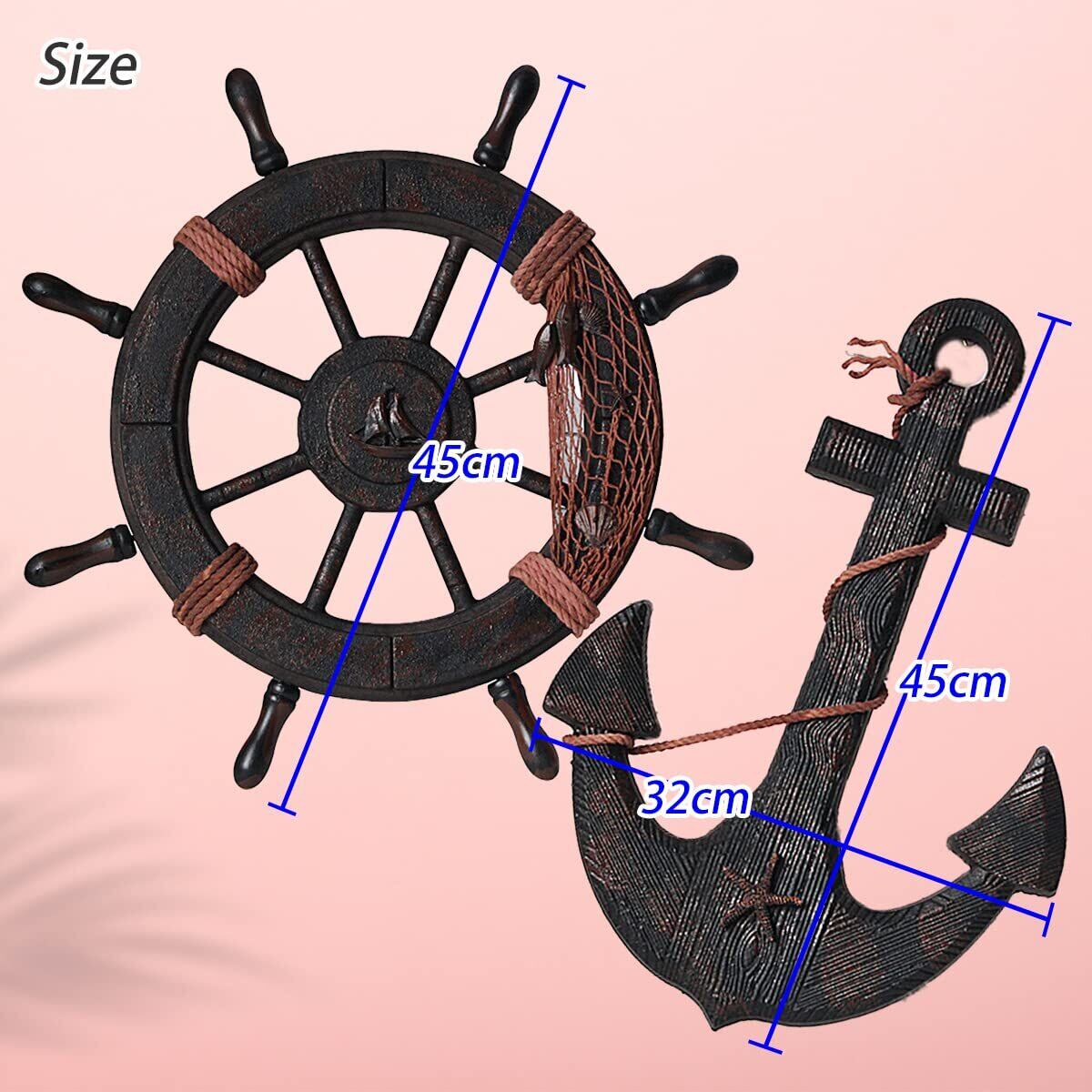 【数量限定】木製 舵輪 錨 アンティーク 海賊 インテリア 御洒落 船 オブジェ レトロ 舟 樽 ガーデニング ガーデニング雑貨 店舗用看板 ハワイ ビンテージ アパレル (M, 錨 舵輪 セット) | paghag