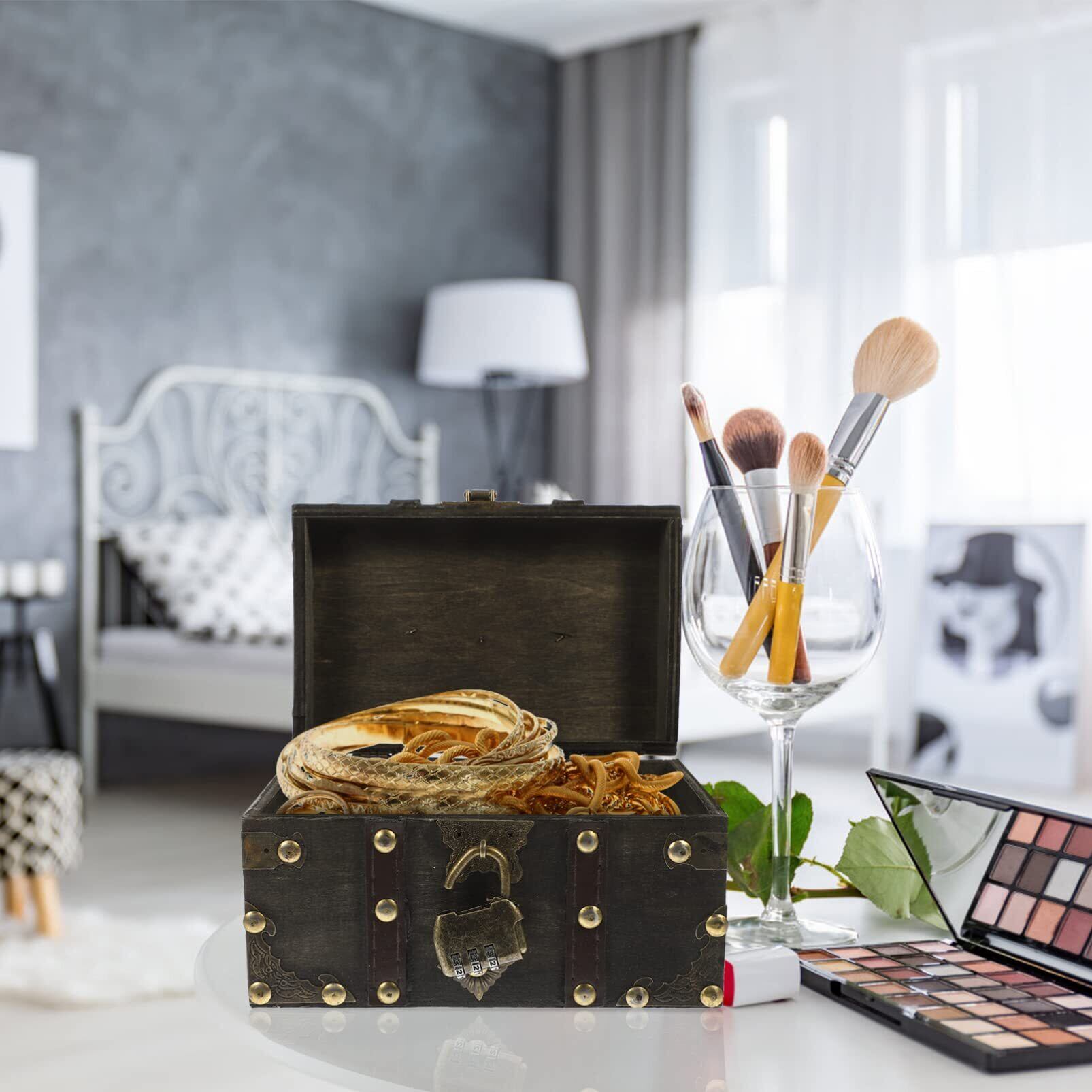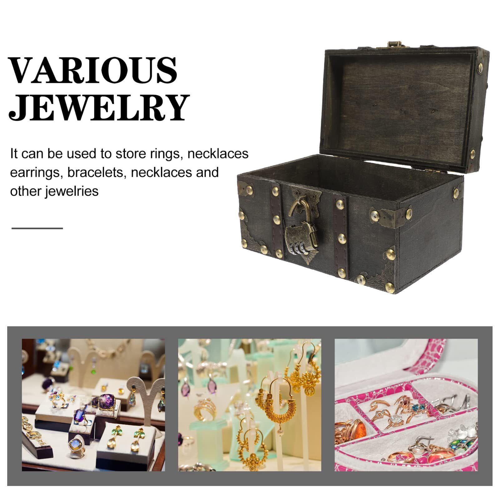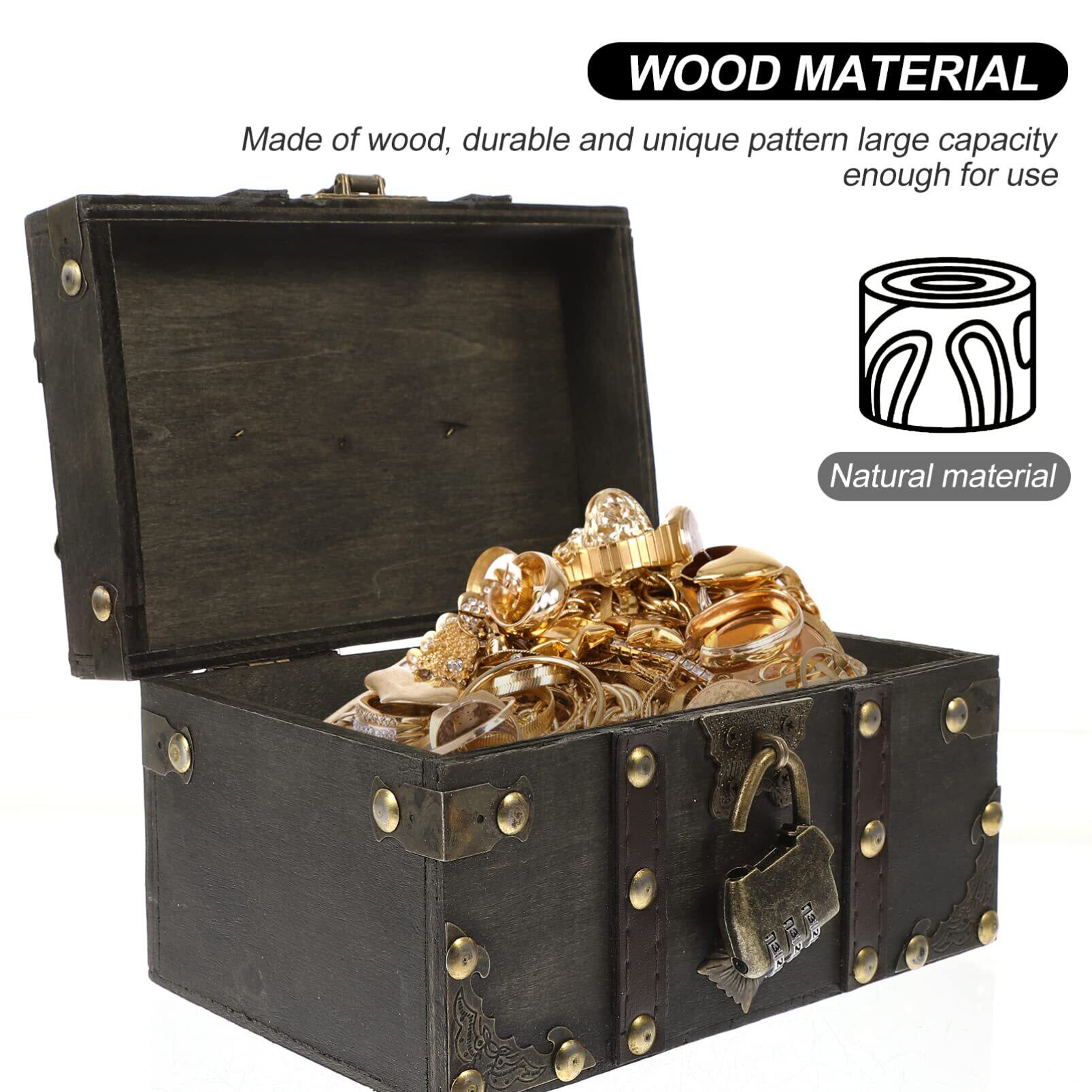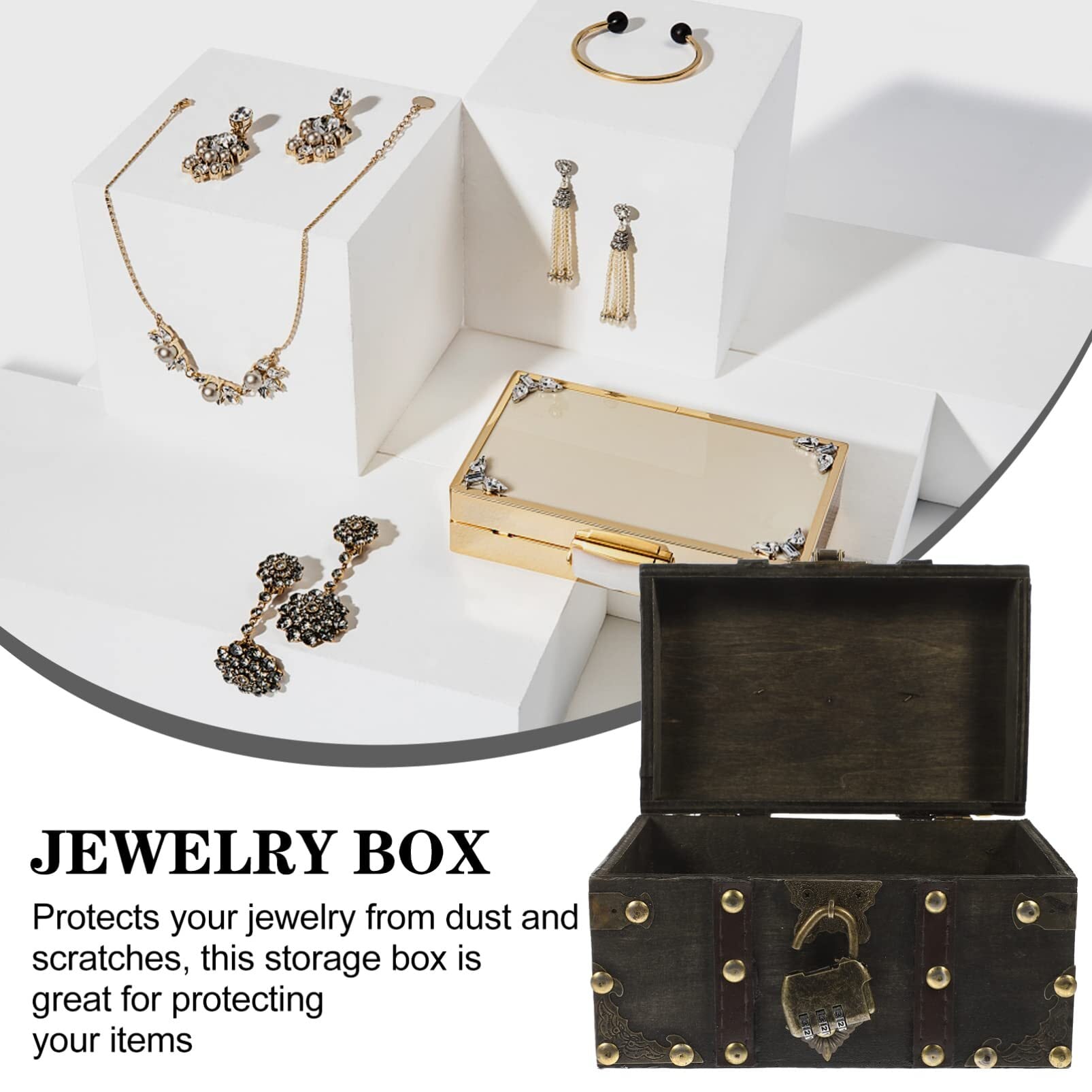 【木製宝箱】耐久性のある高品質の木材と絶妙な職人技で作られた、頑丈でスタイリッシュなジュエリーボックスです。 ご自宅の装飾や写真の小道具としても最適です。