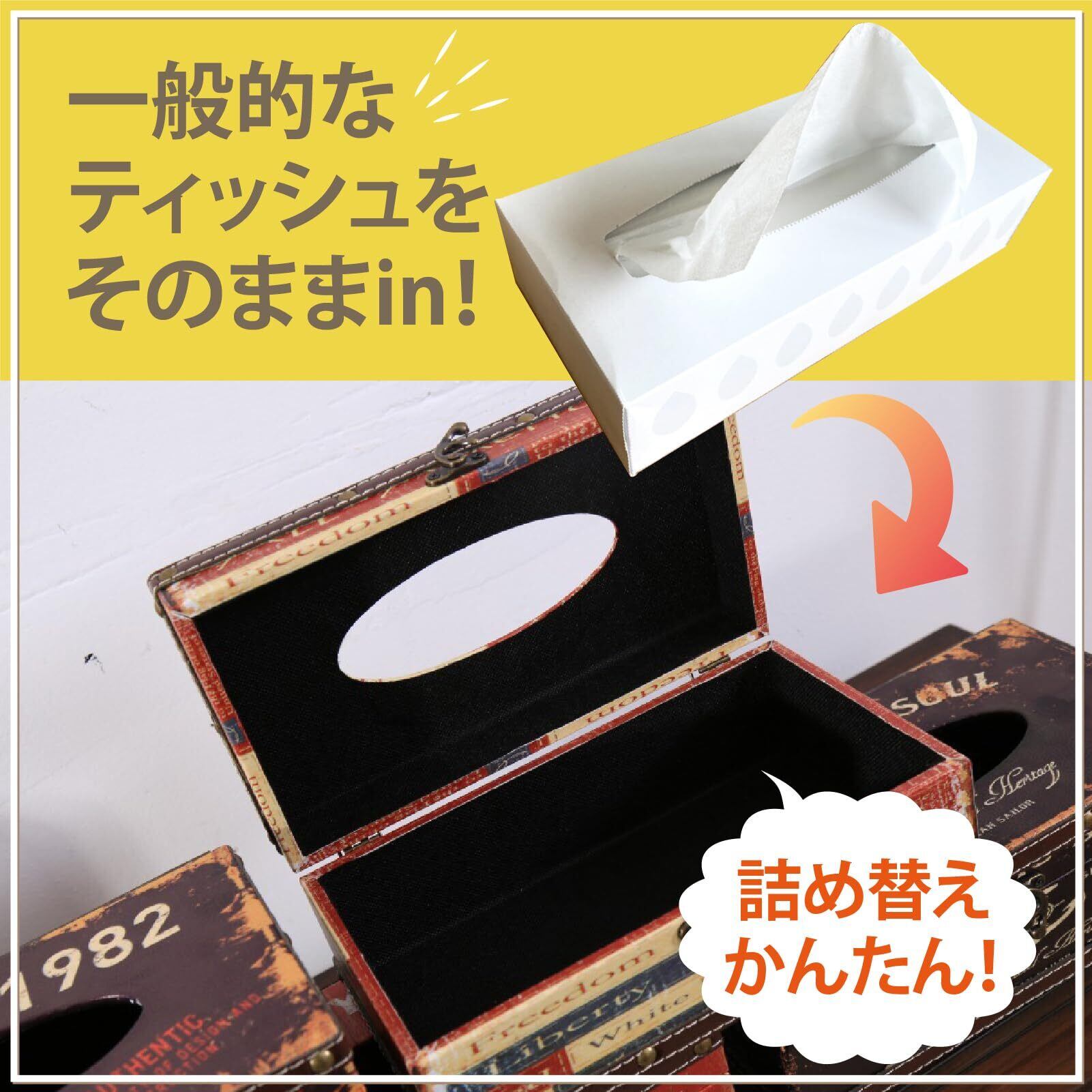 ビンテージ風のデザインがおしゃれなティッシュケース、ティッシュボックスです。部屋に置いておくだけで、おしゃれ感がぐっとアップ!