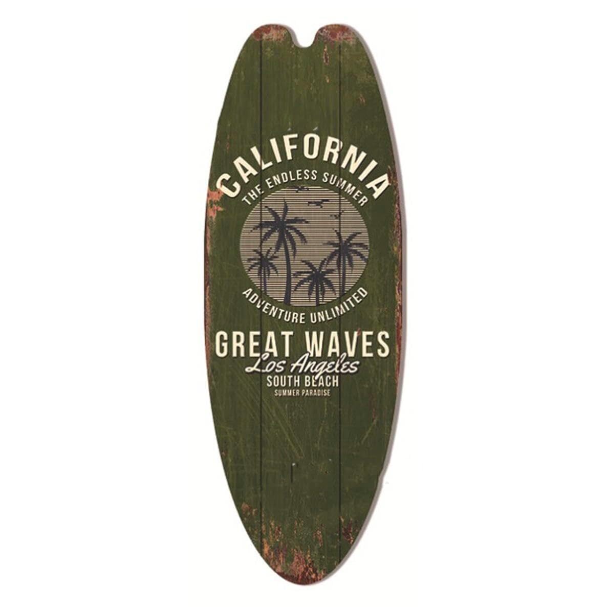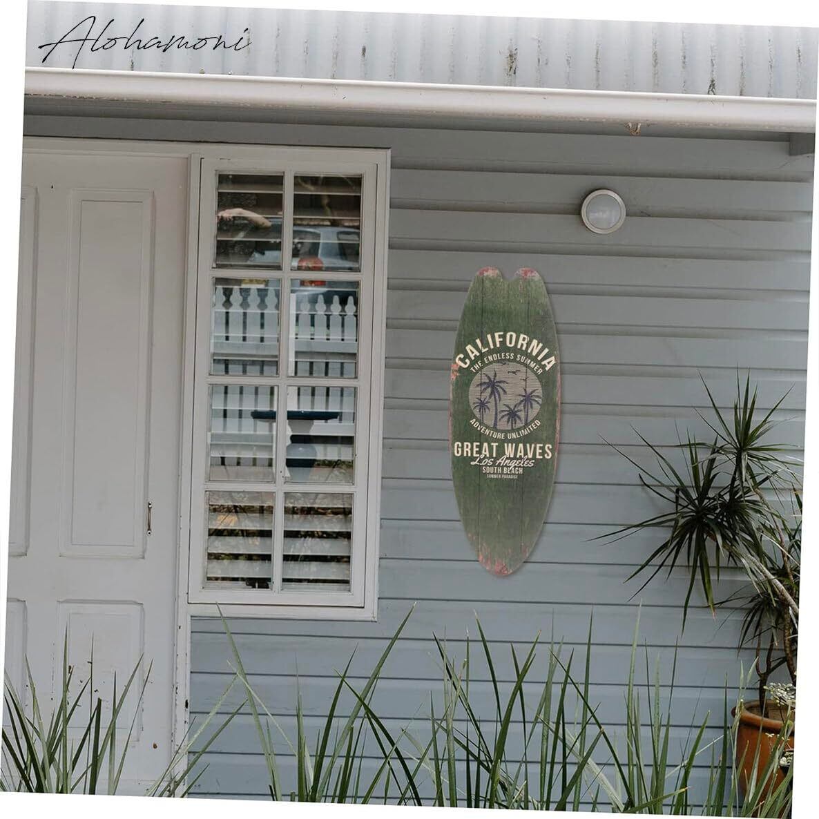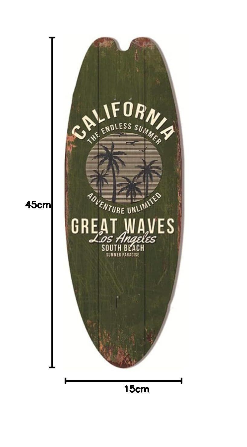 [ALOHAMONI] ヴィンテージ アメリカン ウッド サーフボード サインボード 木製 プレート 看板 ウェルカムボード アンティーク レトロ カフェ USA カリフォルニア 西海岸 ハワイ (③緑CALIFORNIA)