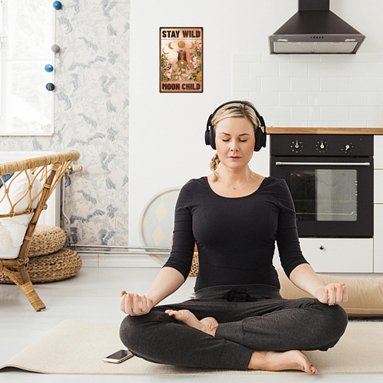 商品情報:ヨガをする女性ブリキの看板。サイズ:20x30cm(A4サイズ)。レトロな鉄製看板は、飾りたい場所に取り付けられます。シンプルに部屋の雰囲気をアップさせてくれます