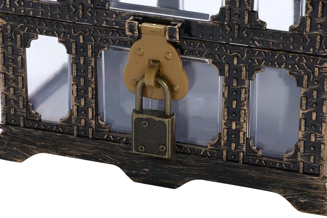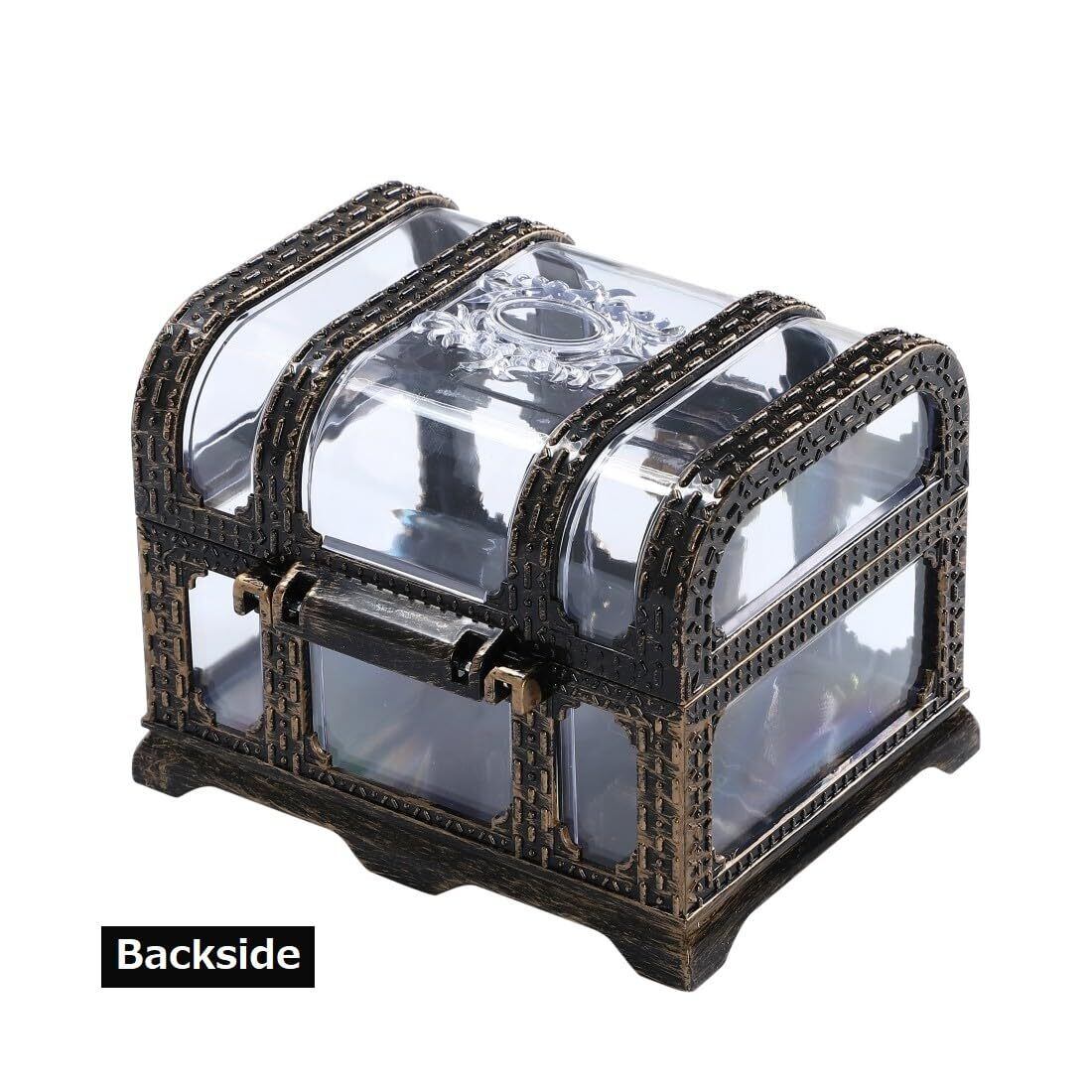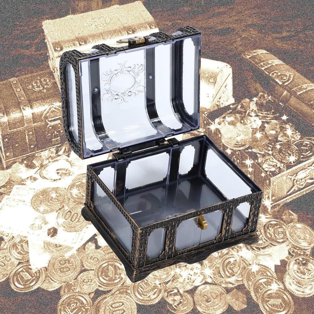 【在庫処分】r_planning 透明 おもちゃ箱 レトロ アンティーク 海賊 宝箱 小物入 角型 鍵付