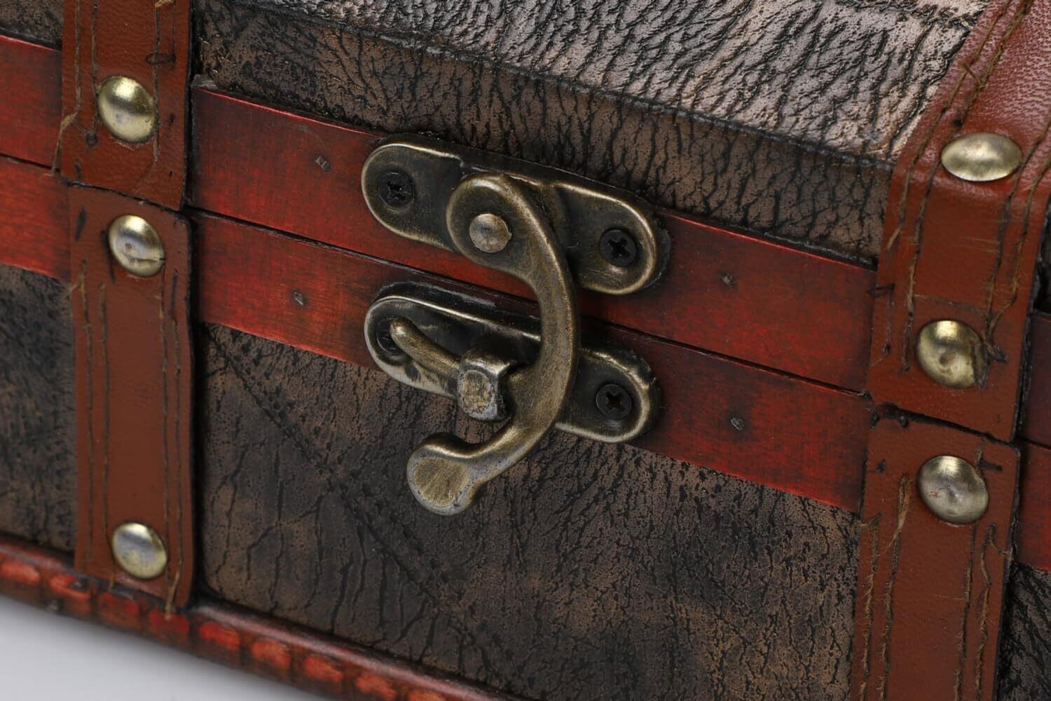 r_planning アンティーク調 レトロ 木箱 Pu エンボス加工 リベット 装飾 小物入