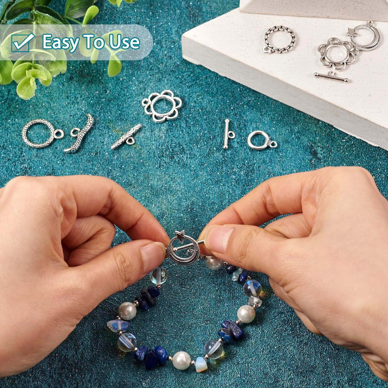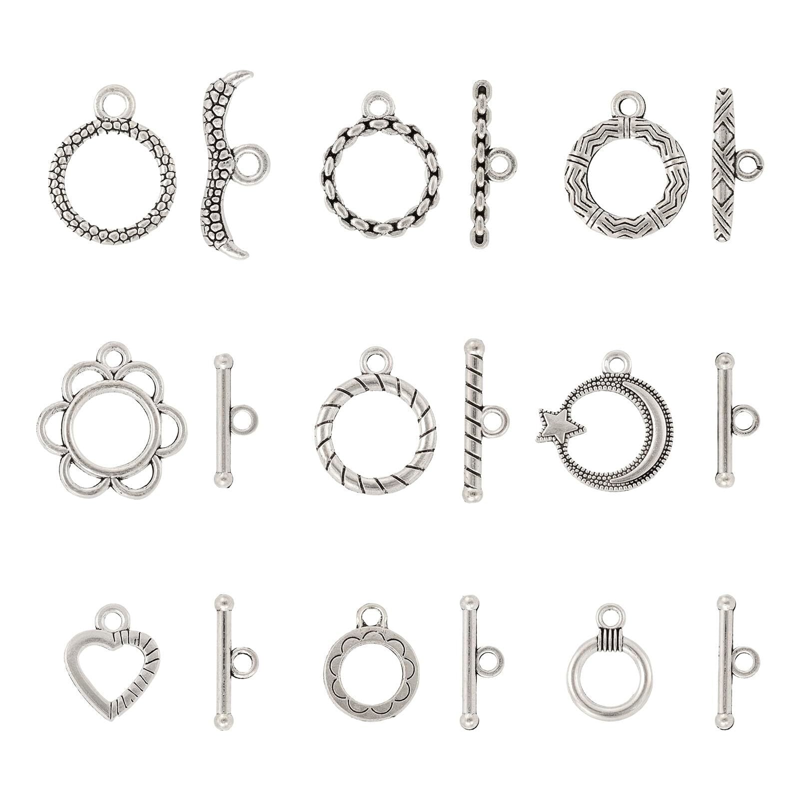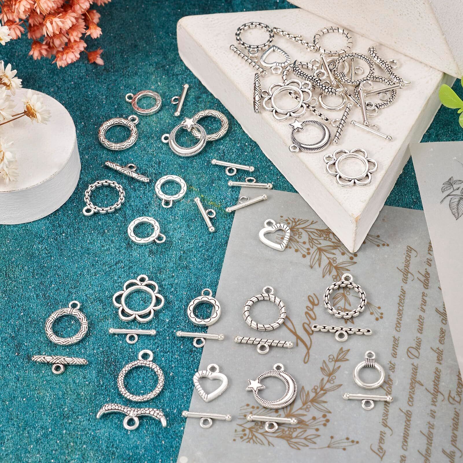Beadthoven マンテル パーツ マンテルリング クラスプ ヴィンテージ チベットスタイル 接続金具 約54組入り アンティークシルバー 合金製 トグル クラスプ エンドパーツ O字型クラスプ T字型クラスプ リングクラスプ 留め具 ハート型 花形 星月形 丸型 アクセサリーパーツ ネックレス ブレスレッド ジュエリー作成用 DIY ハンドメイド 手芸材料 手作り素材 クラフト用品