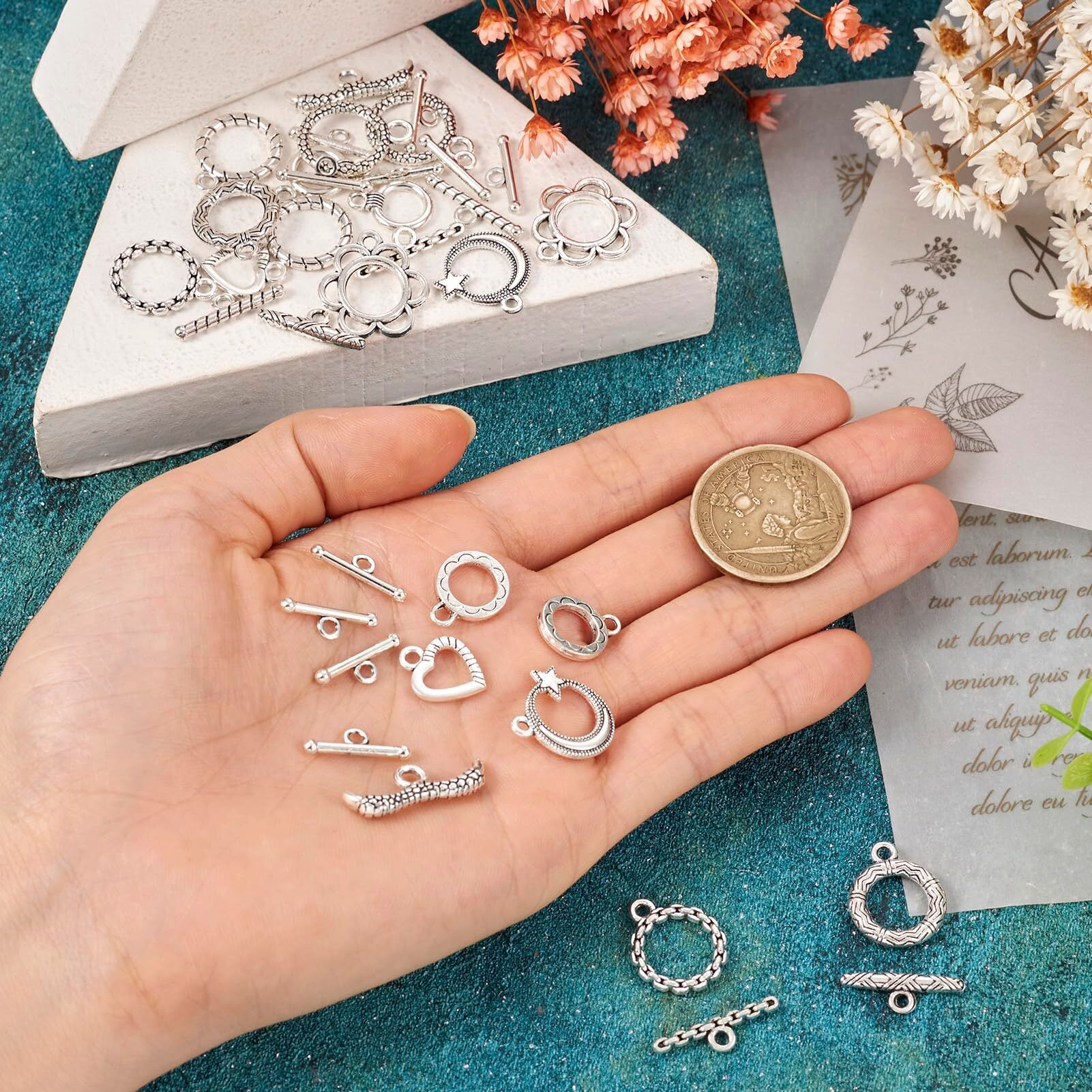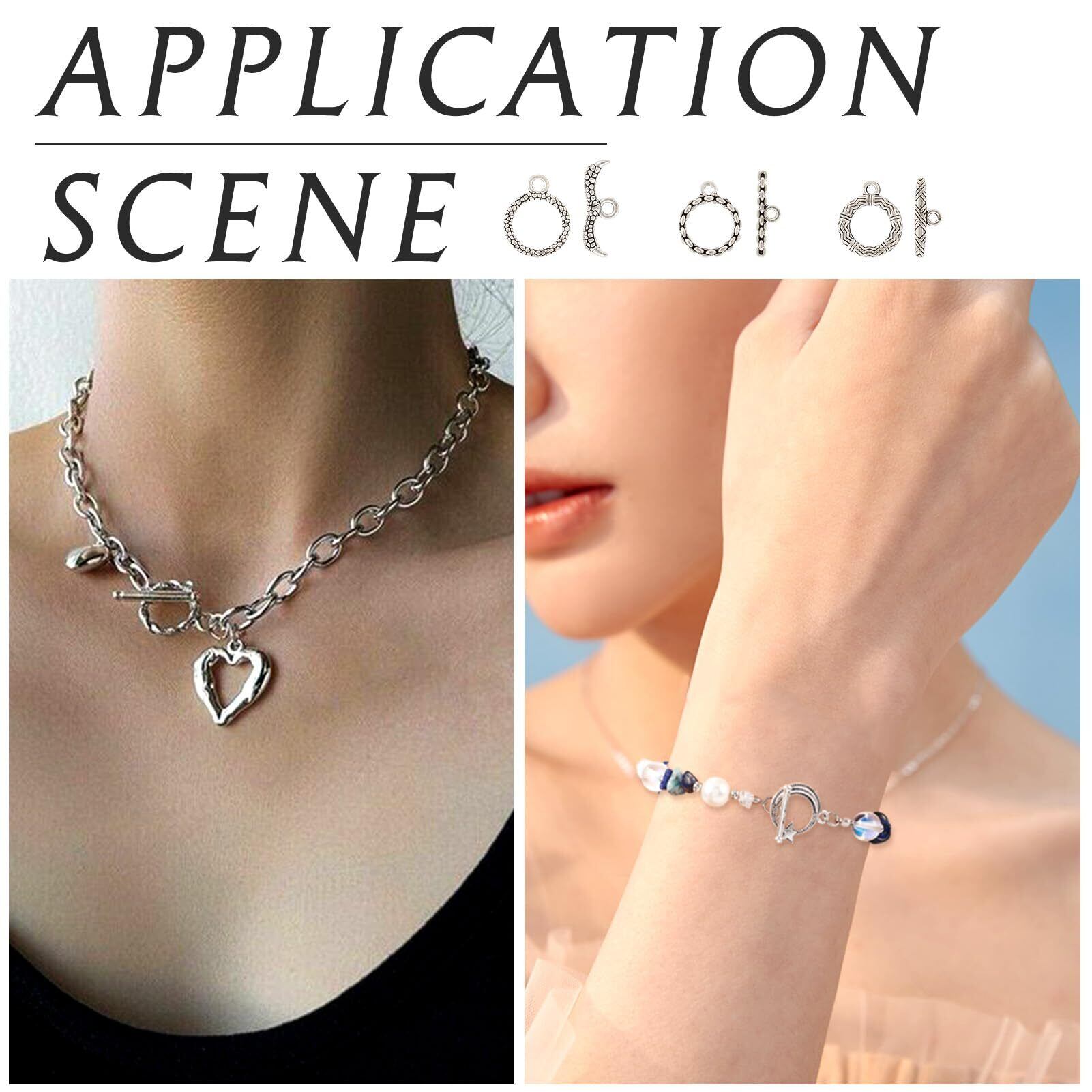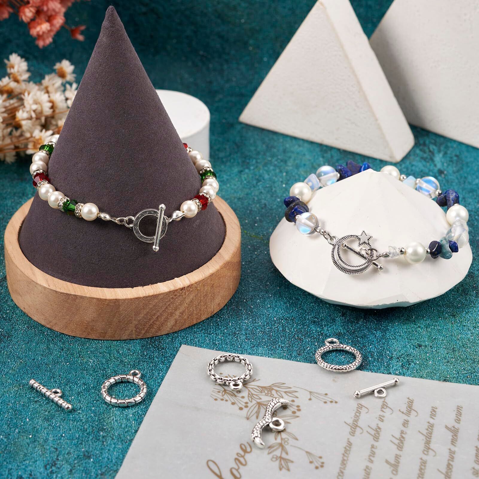 Beadthoven マンテル パーツ マンテルリング クラスプ ヴィンテージ チベットスタイル 接続金具 約54組入り アンティークシルバー 合金製 トグル クラスプ エンドパーツ O字型クラスプ T字型クラスプ リングクラスプ 留め具 ハート型 花形 星月形 丸型 アクセサリーパーツ ネックレス ブレスレッド ジュエリー作成用 DIY ハンドメイド 手芸材料 手作り素材 クラフト用品