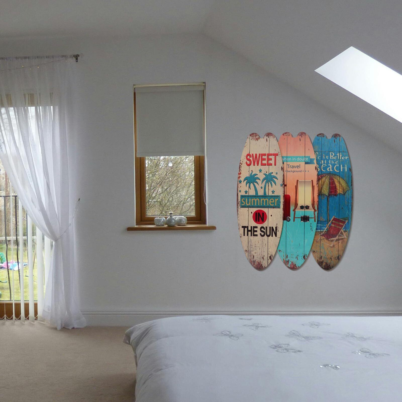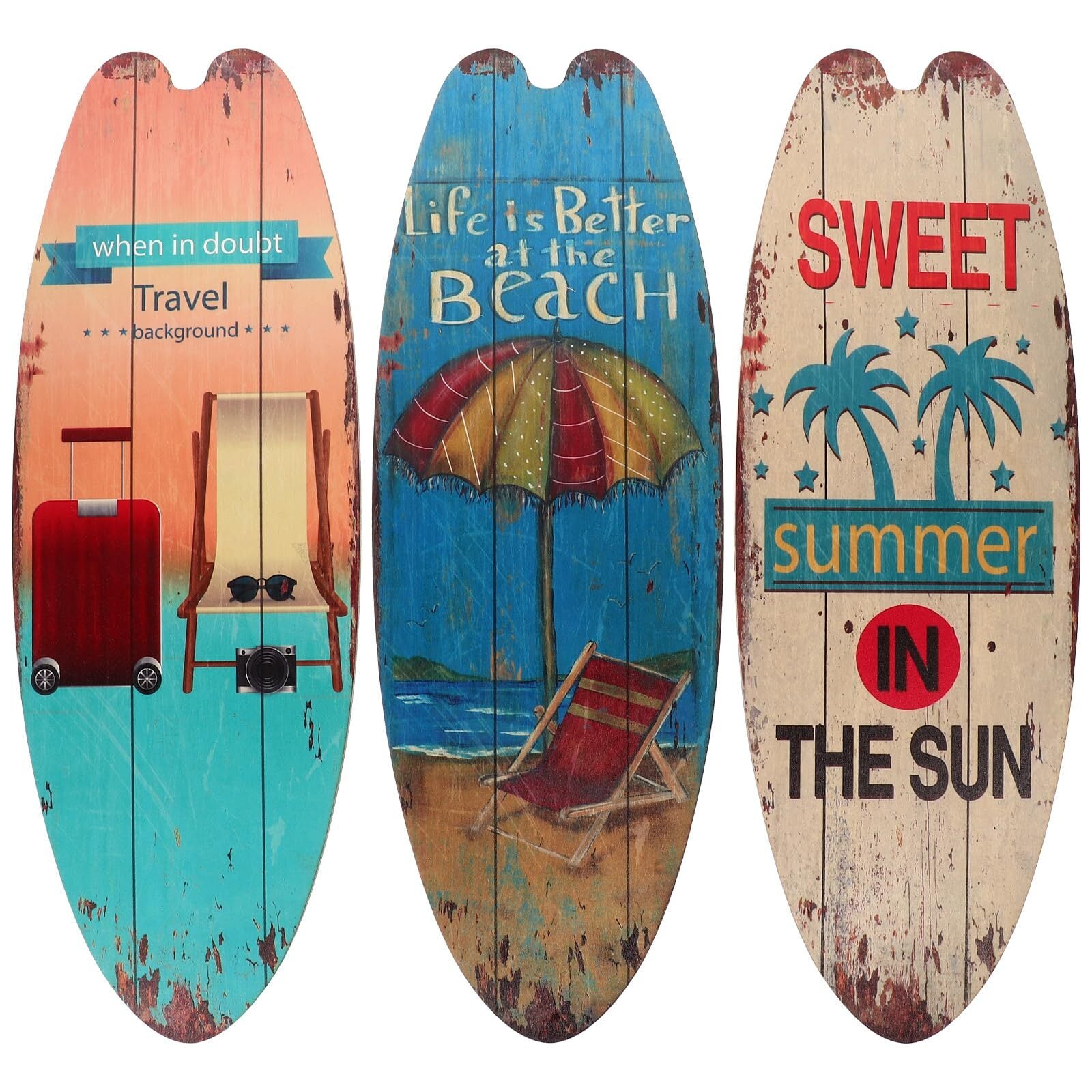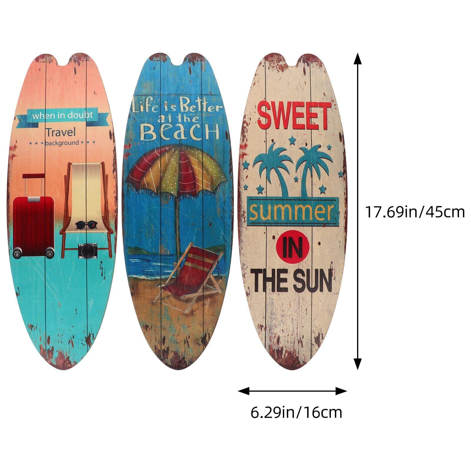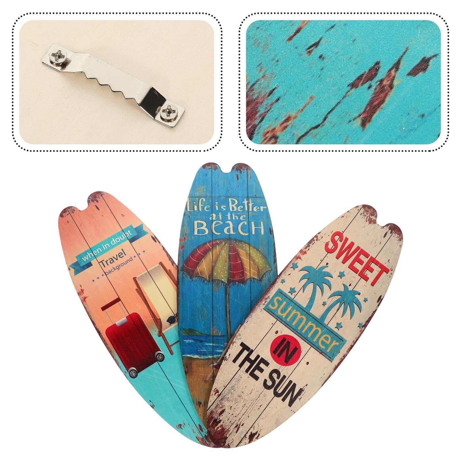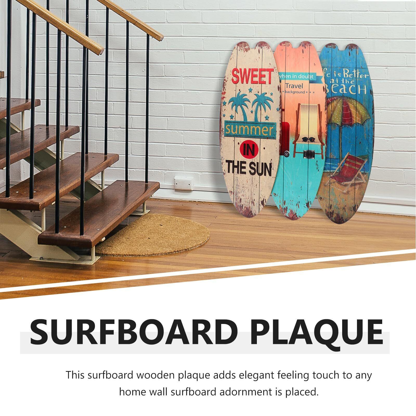 OUNONA 3個 サーフボード 壁掛け 木製 看板 ウエルカムボード ドアプレート ヴィンテージ ハワイアン 雑貨 ビーチテーマの装飾 バーの装飾 アメリカン雑貨 インテリア 海 ビーチ 夏の日