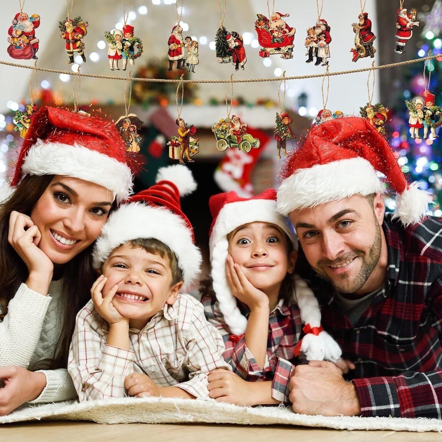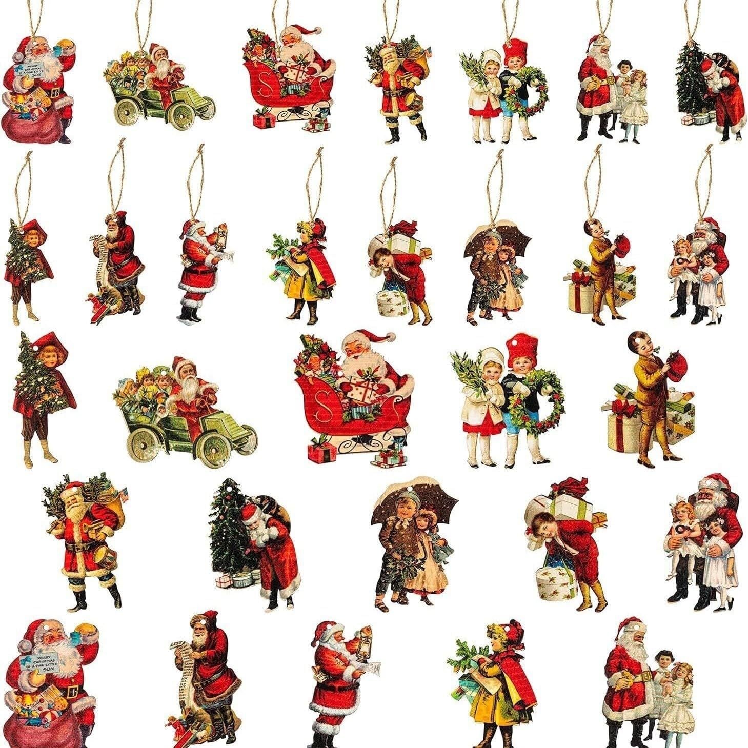 クリスマスツリー 飾り オーナメント 木製 ビクトリア調 北欧 レトロ アンティークデコレーション ドイツ ギフト インテリア ひも付き 壁飾り おしゃれ サンタクロース 可愛い 小物 30点セット