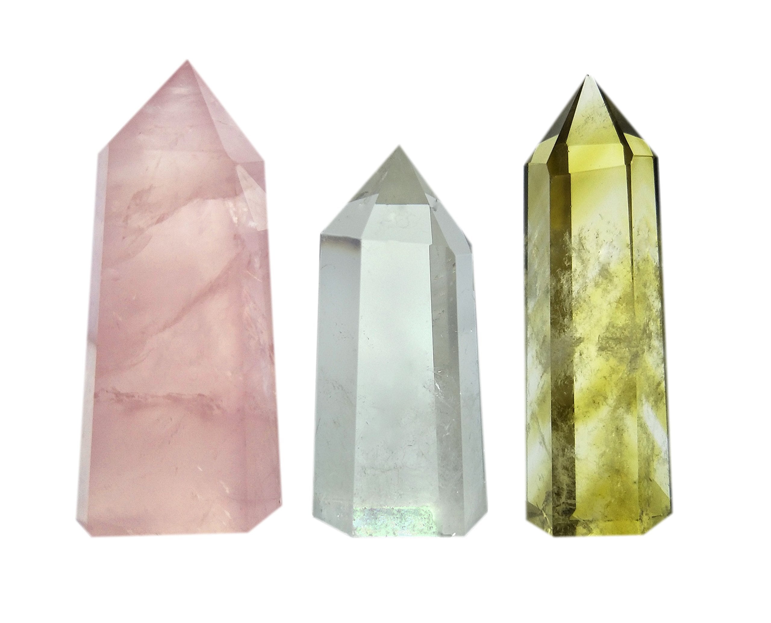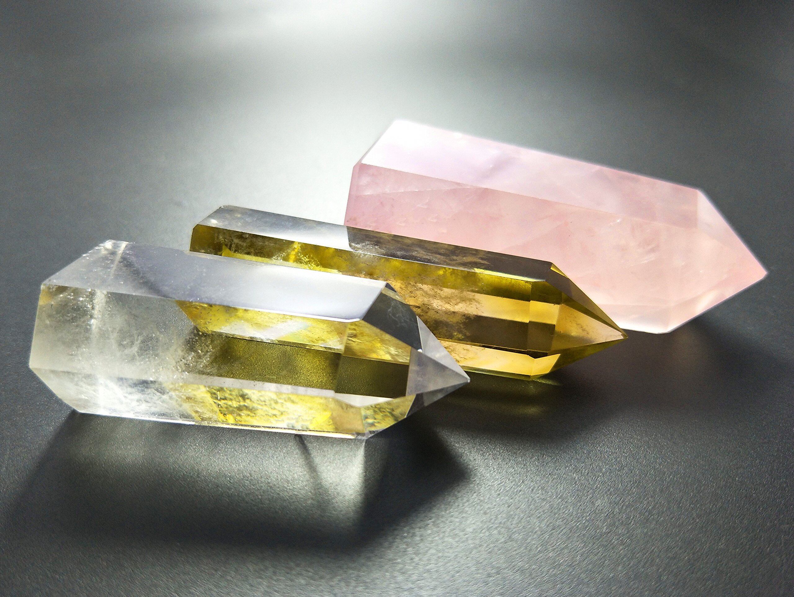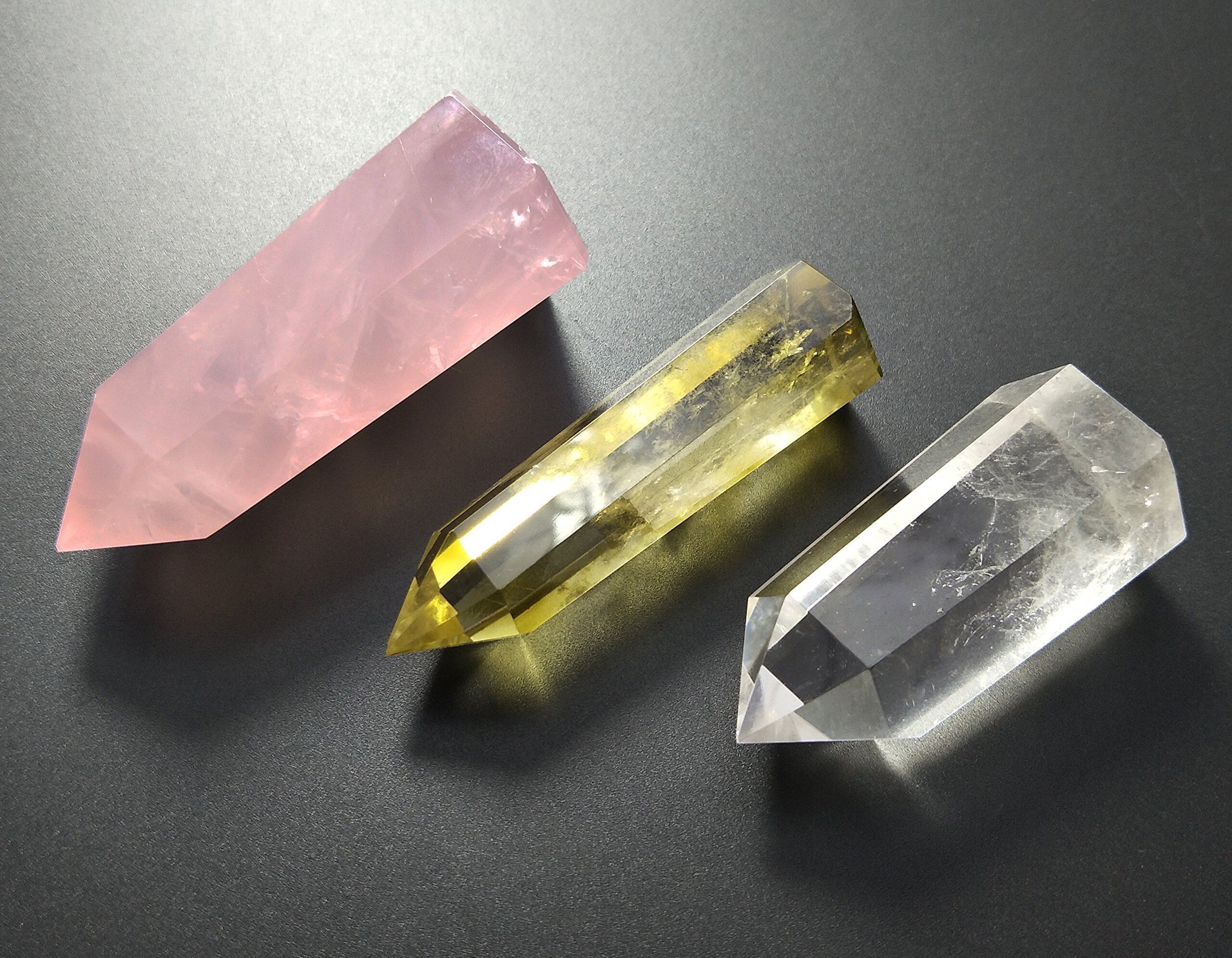 天然石ヒーリングワンド三本セット(ローズクォーツ/クリアクォーツ/シトリン)パワーストーン 浄化と瞑想、チャクラ強化に最適 - Mina Heal