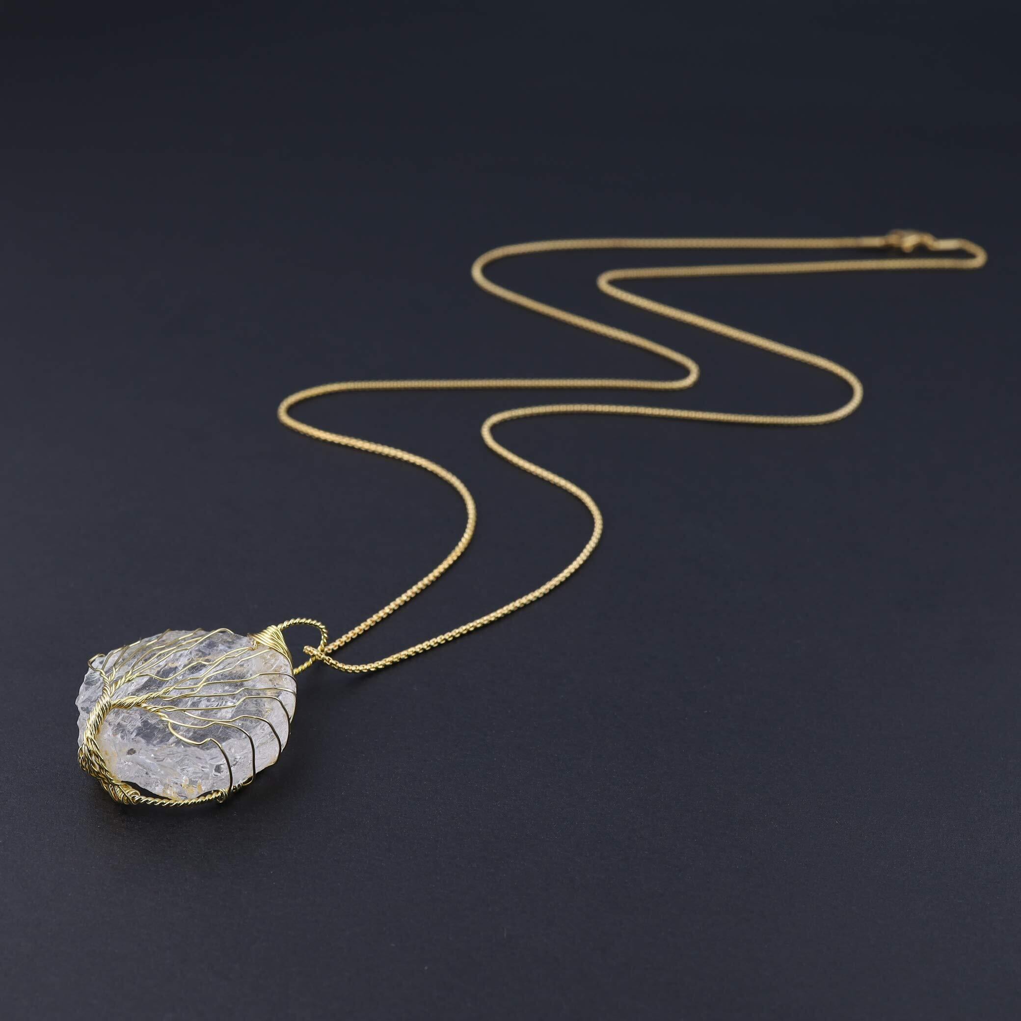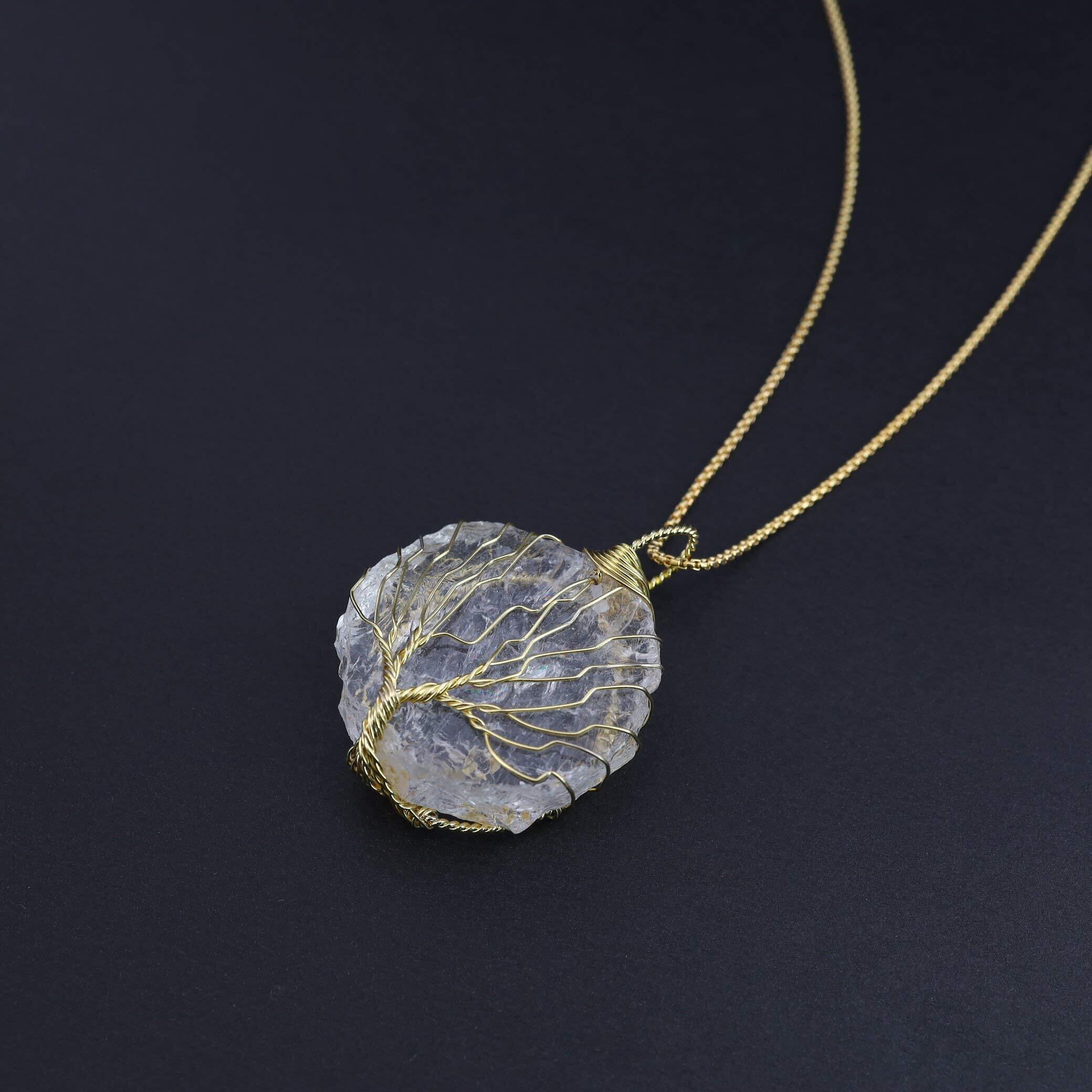 [コアイ] 命の木 生命の樹 手磨き水晶原石 魔除けお守りパワーストーンペンダント ネックレス メンズ レディース