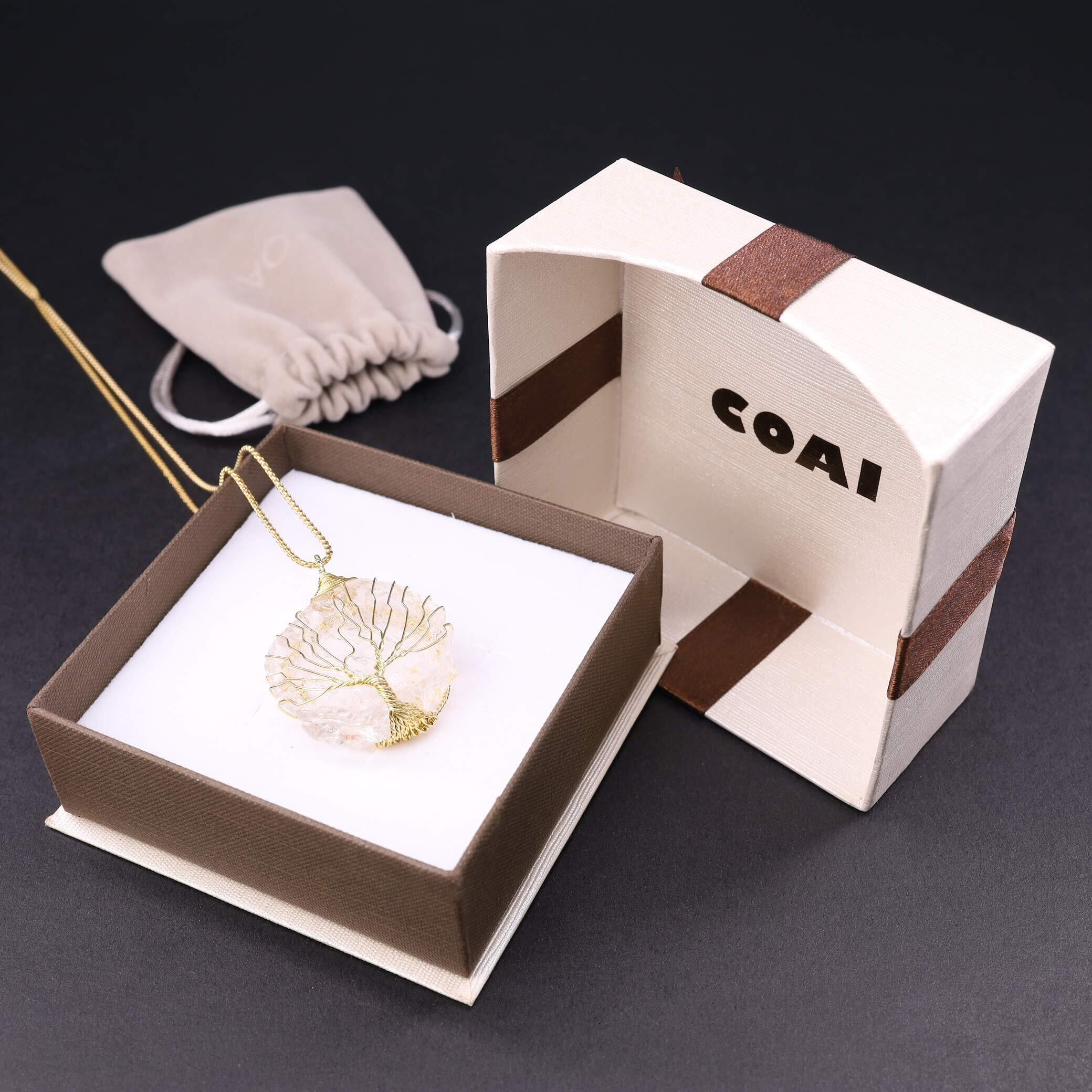 【人気商品】[コアイ] 命の木 生命の樹 手磨き水晶原石 魔除けお守りパワーストーンペンダント ネックレス メンズ レディース