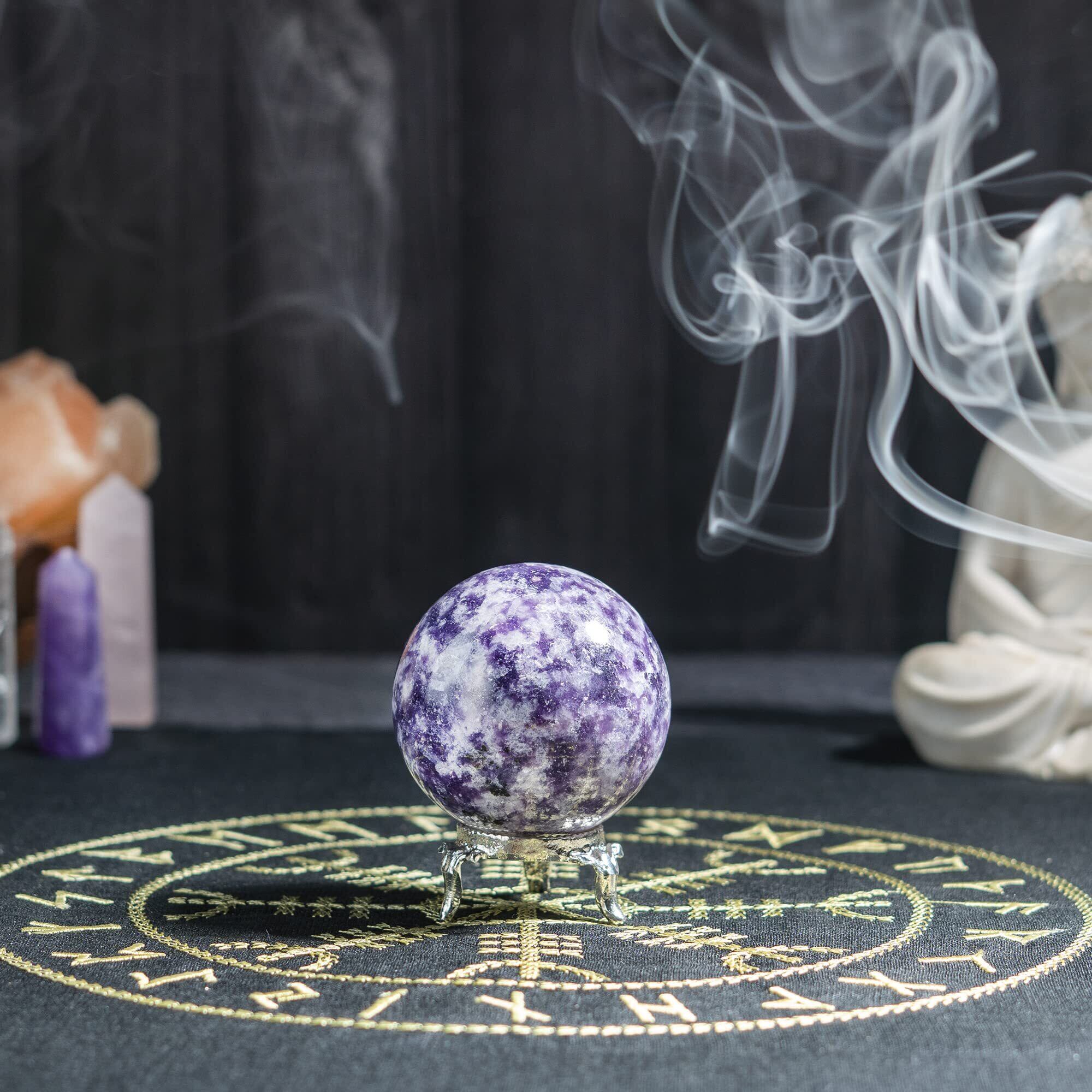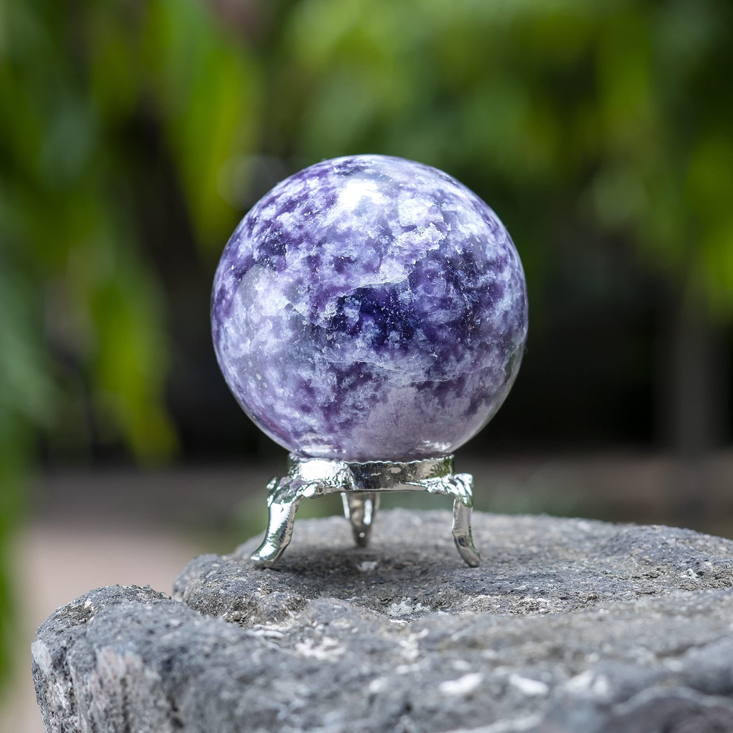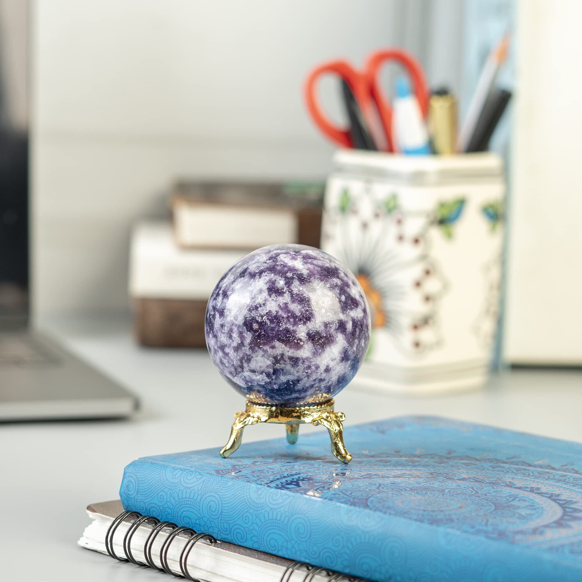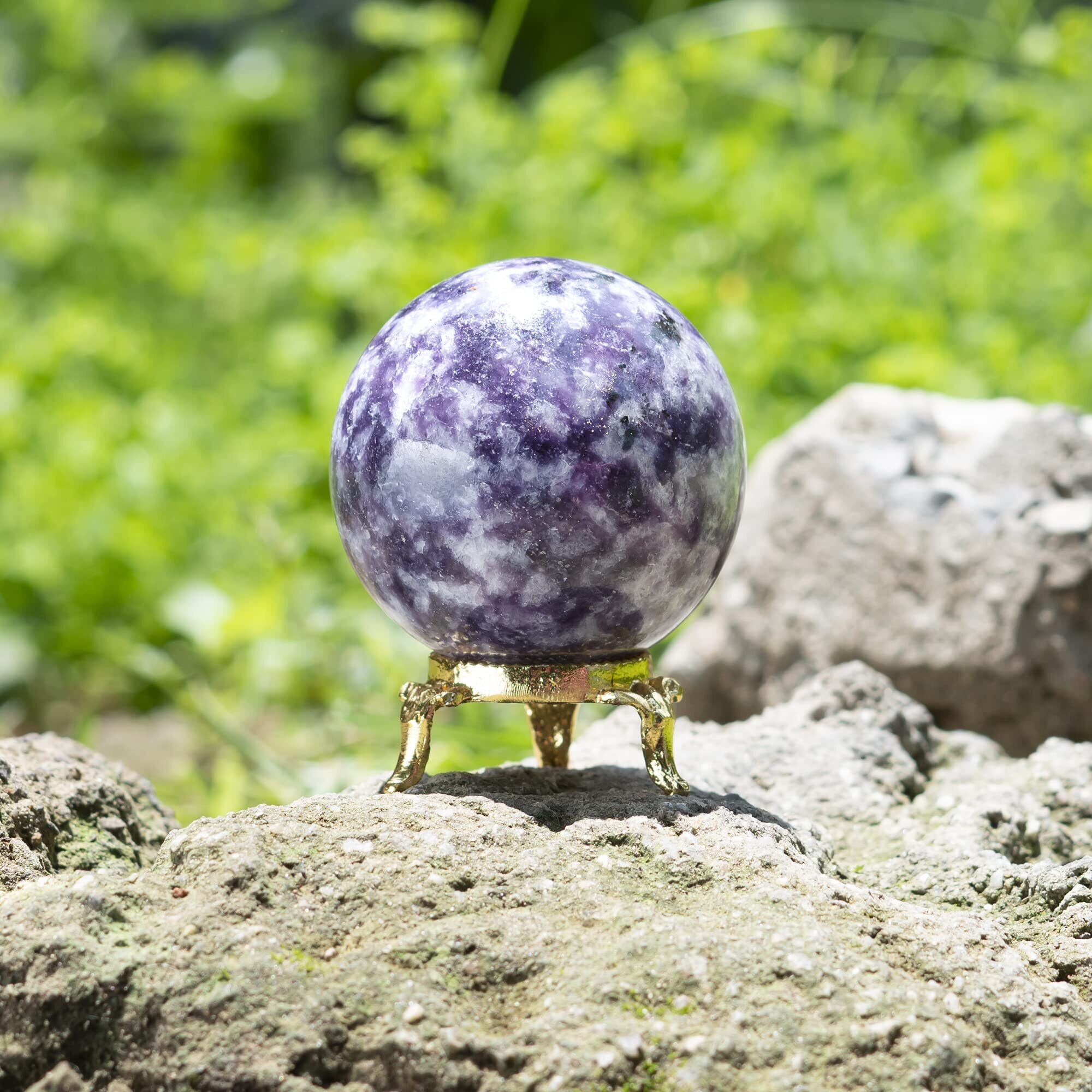Crocon 35mm レピドライト ストーン球体 メタルスタンド付き 1400カラット以上の宝石ボール ヒーリングスフィア 彫刻 置物 風水 占い ホームデコレーション 写真用 クリスタルスフィア