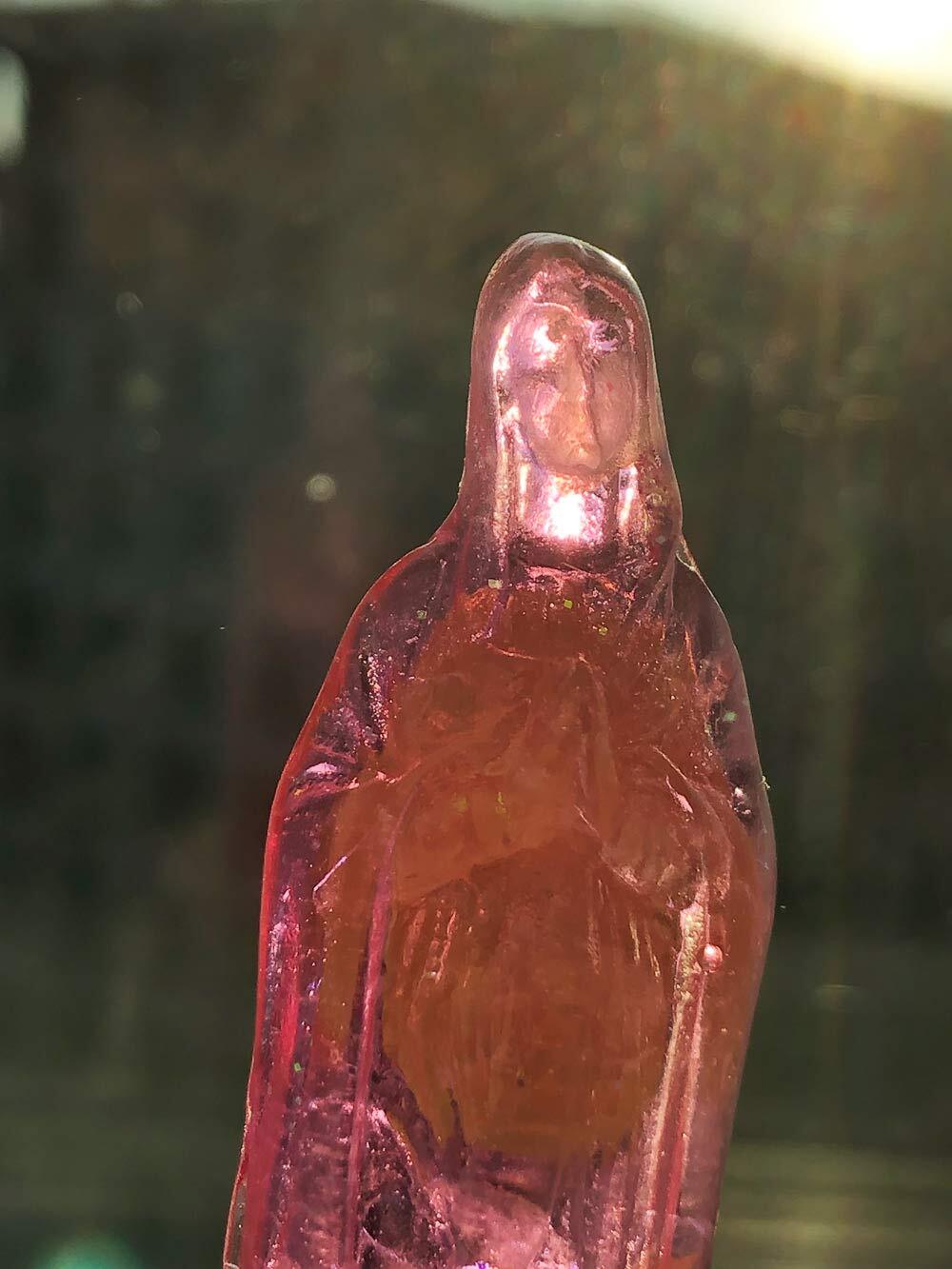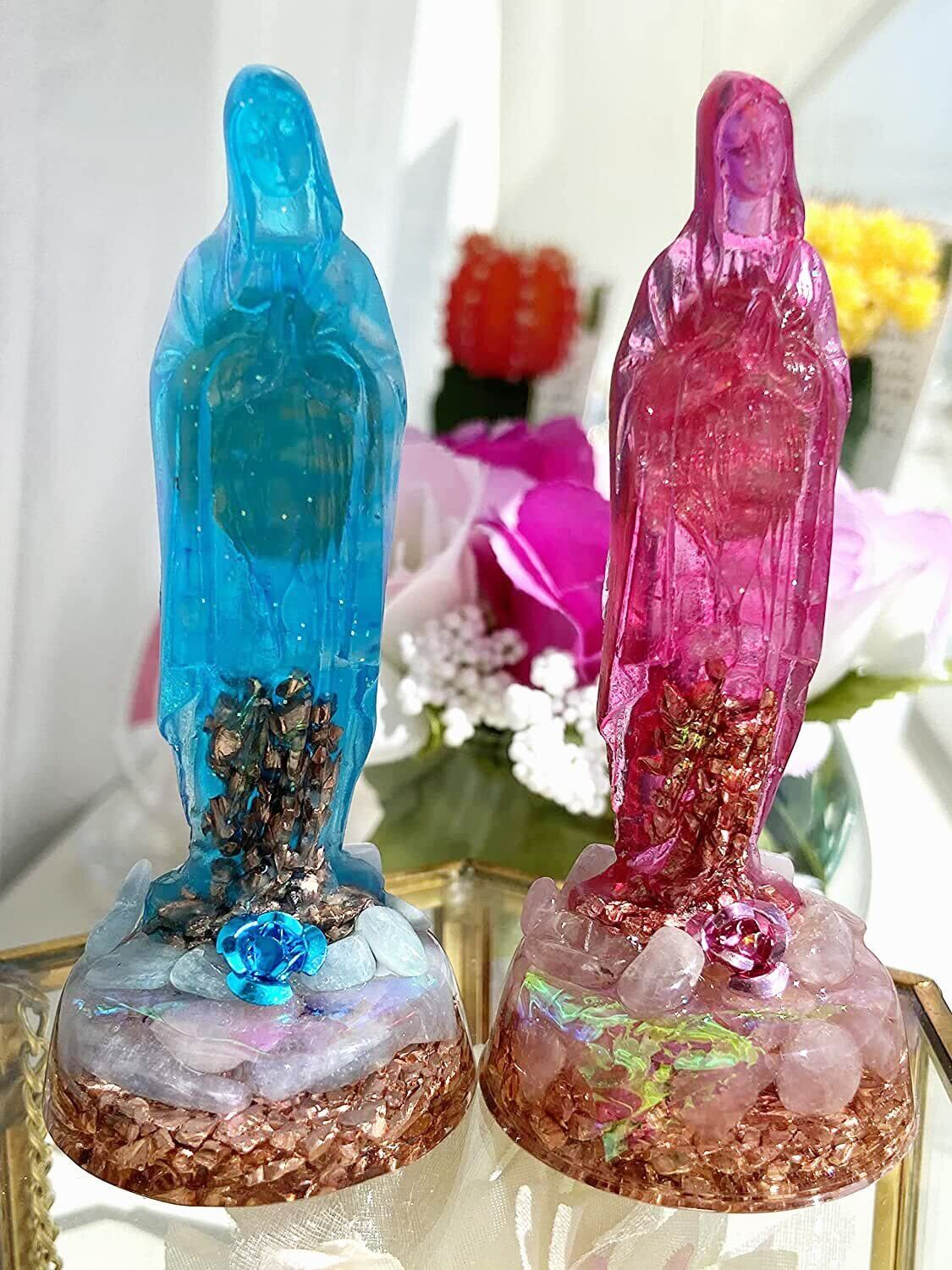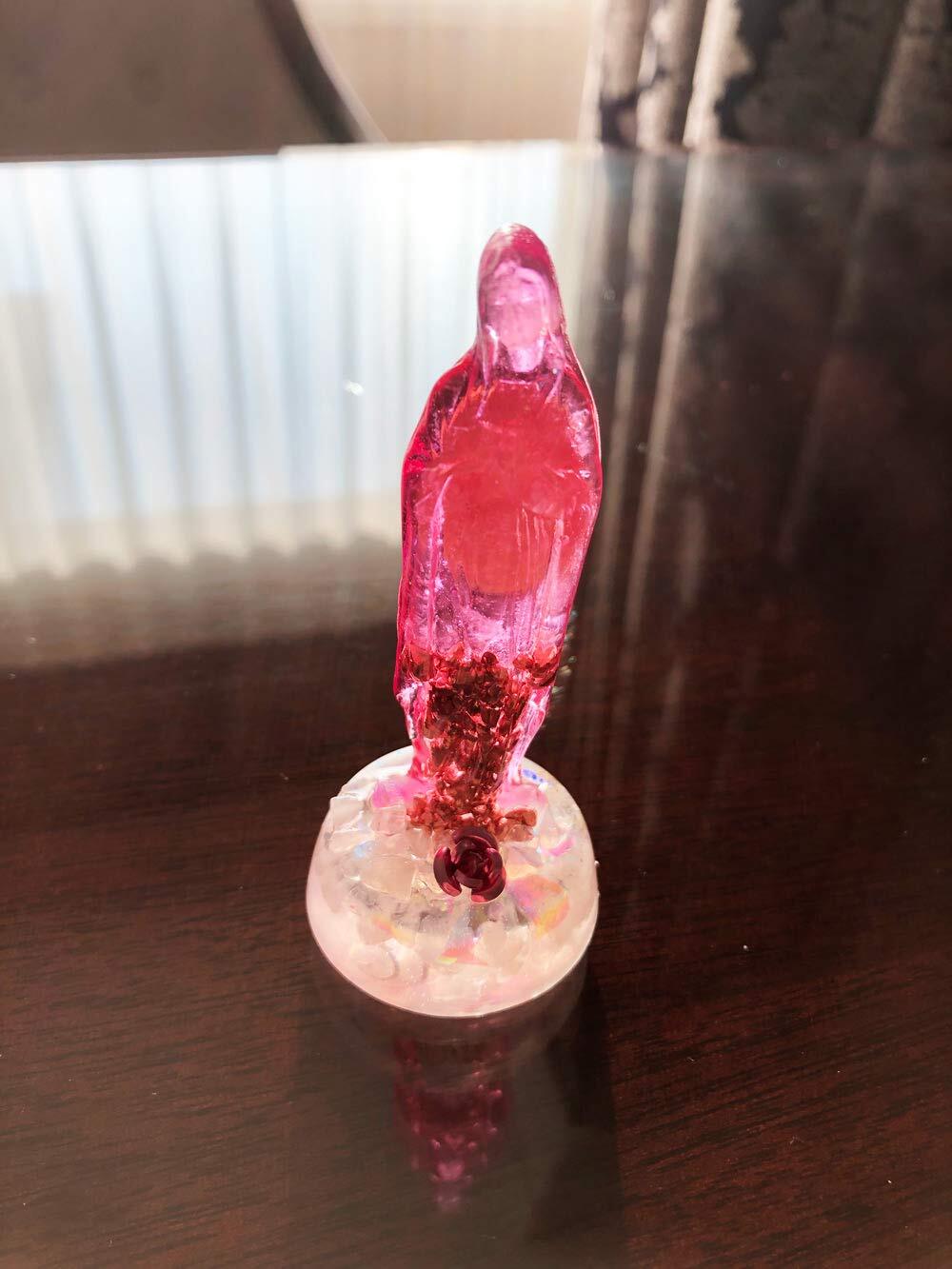 【2022最新】RELIGHT オルゴナイト 水晶 マリア像 不思議のメダイ 高さ9cm 幅3.5cm 置物 浄化 インテリア グッズ 天然石 ローズクォーツ ピンク