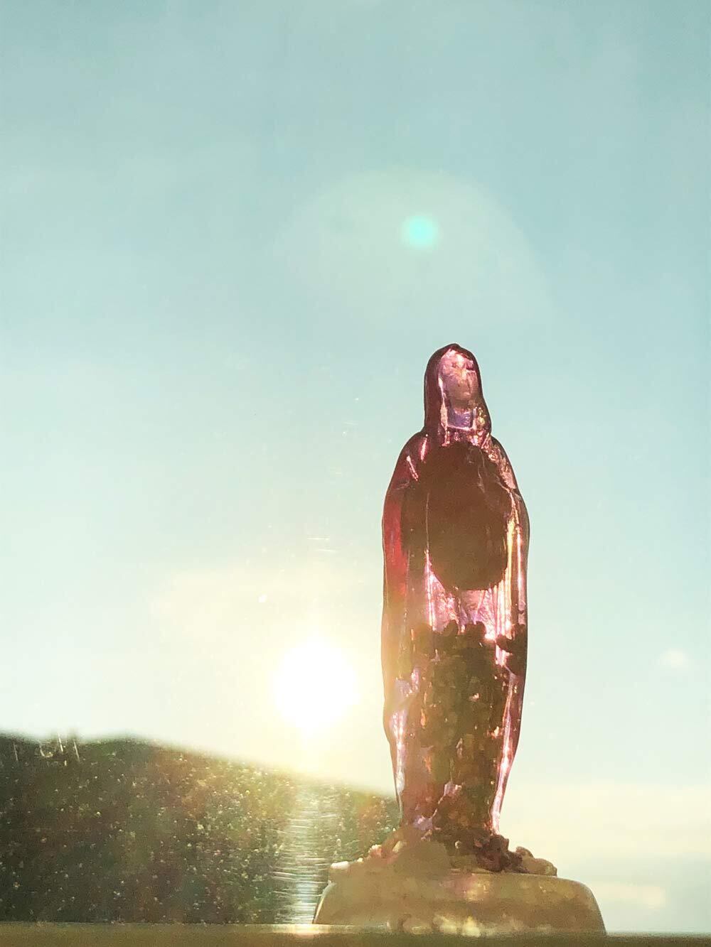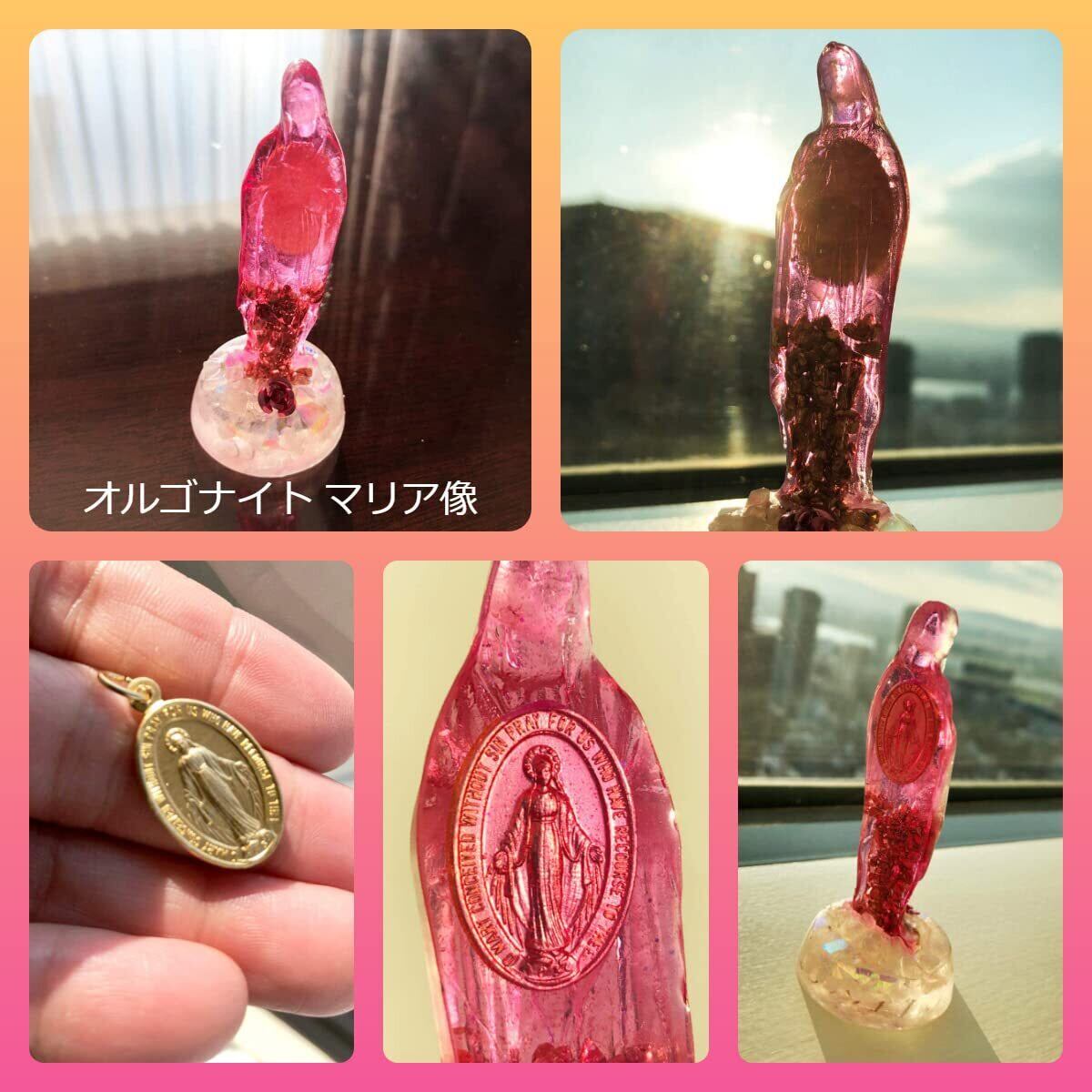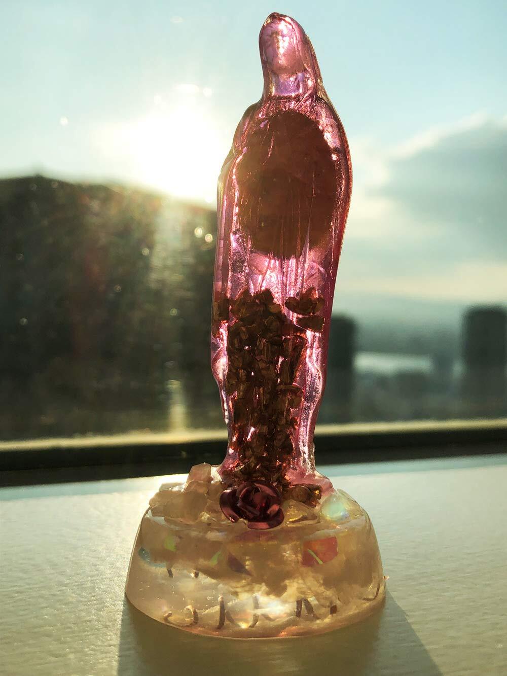 RELIGHT オルゴナイト 水晶 マリア像 不思議のメダイ 高さ9cm 幅3.5cm 置物 浄化 インテリア グッズ 天然石 ローズクォーツ ピンク