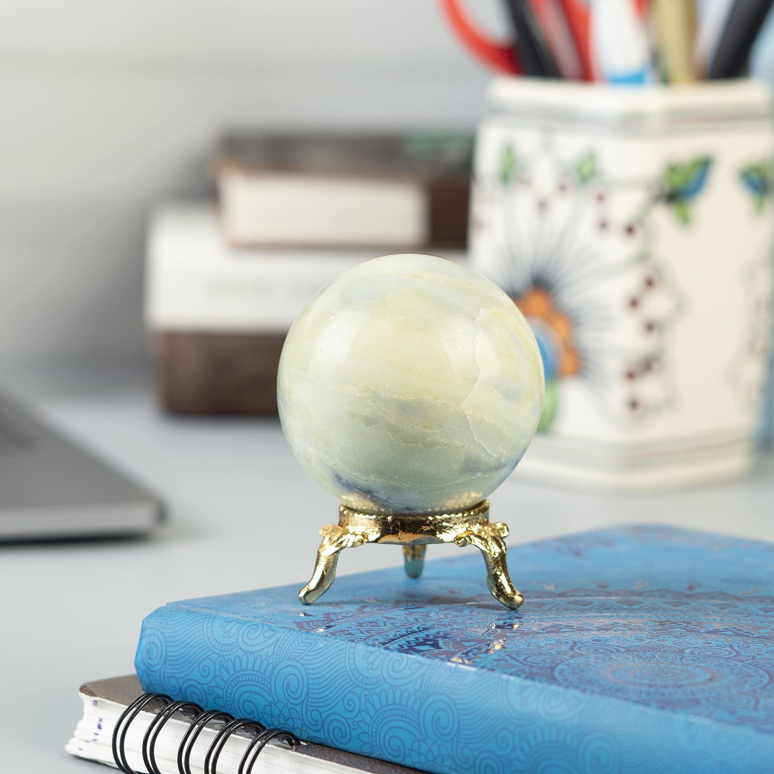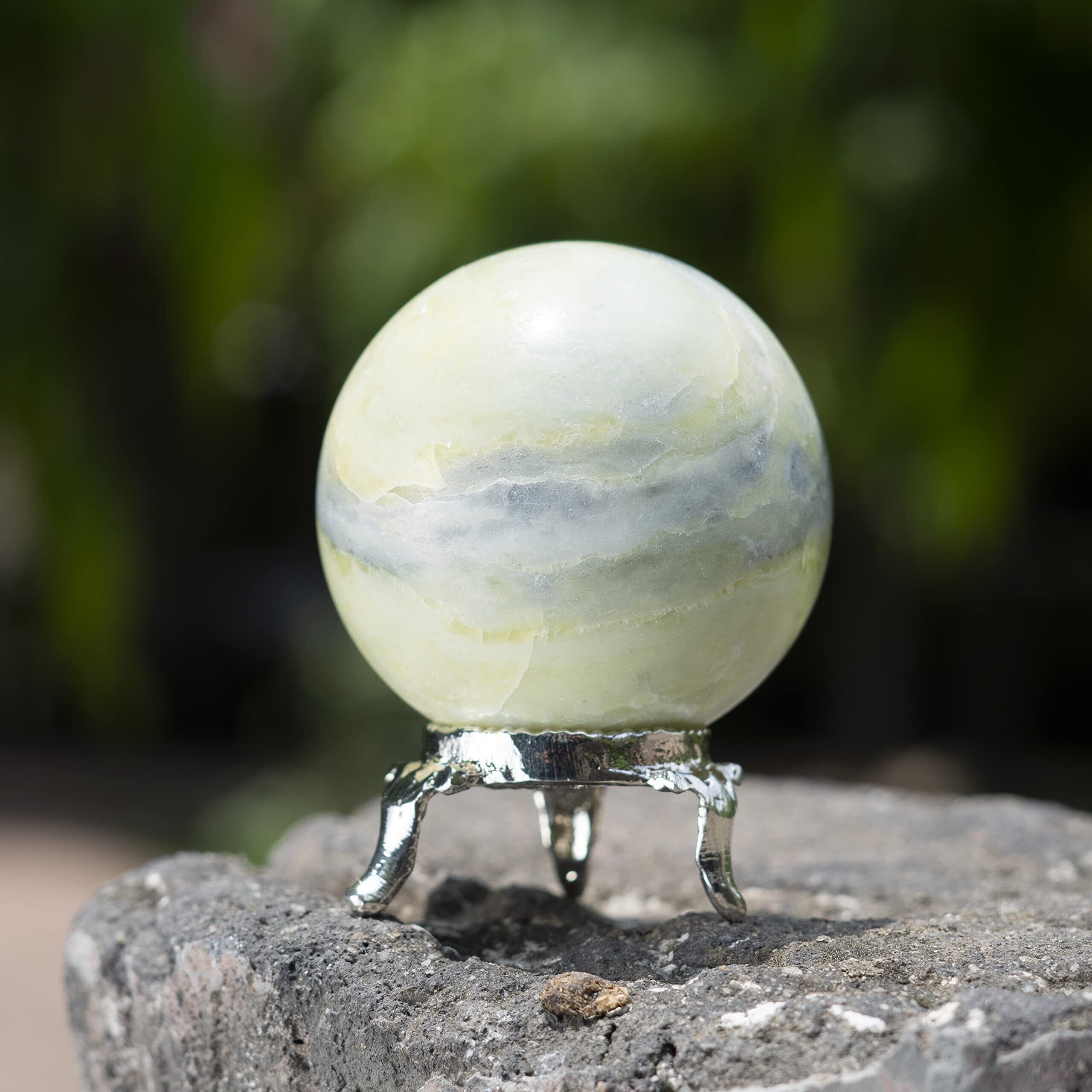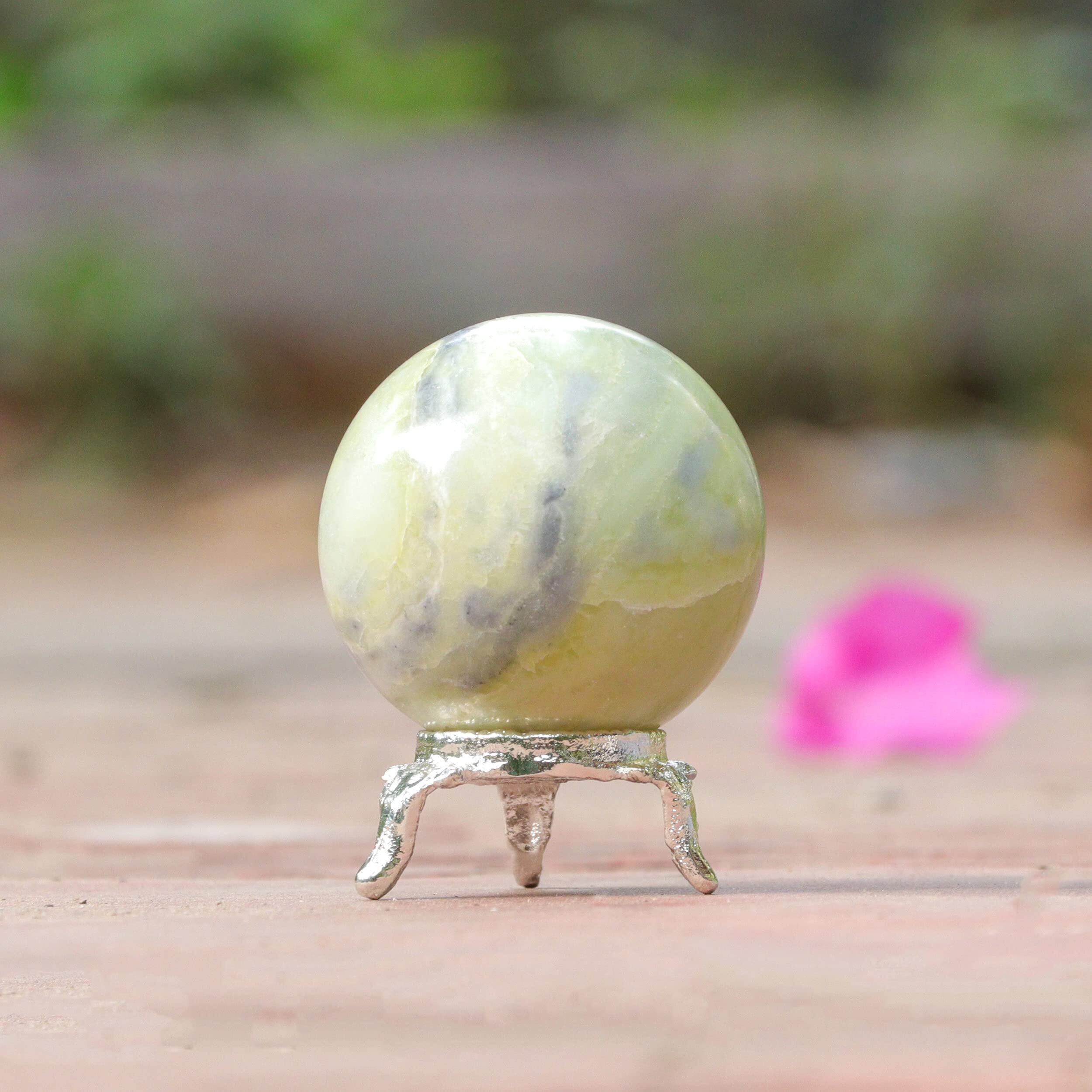 【新春セール】Crocon 蛇紋石クリスタルスフィアとメタルスタンドジェムストーンスフィアヒーリングボール彫刻風水占い用置物家の装飾サイズ:45-55 mm