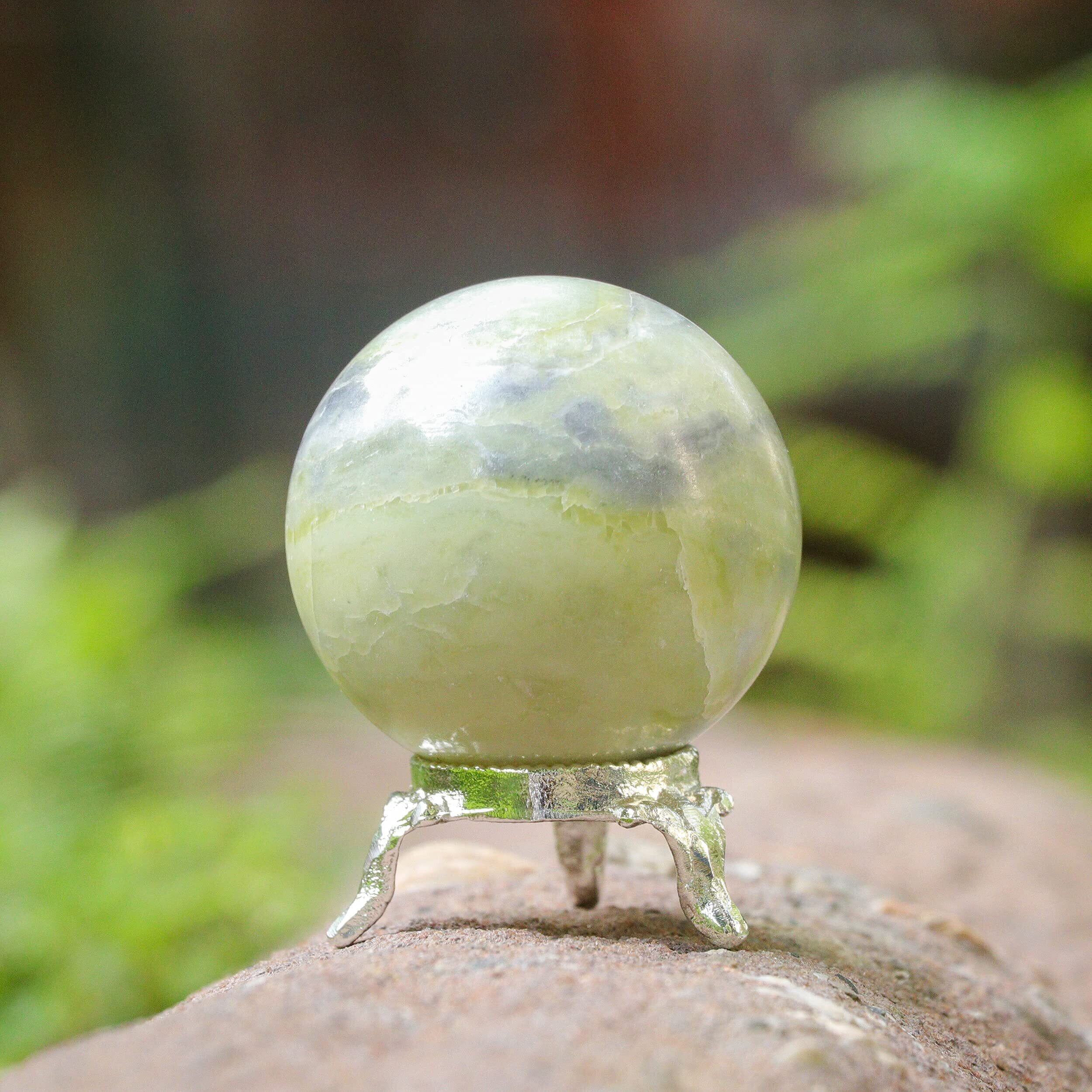 Crocon 蛇紋石クリスタルスフィアとメタルスタンドジェムストーンスフィアヒーリングボール彫刻風水占い用置物家の装飾サイズ:45-55 mm