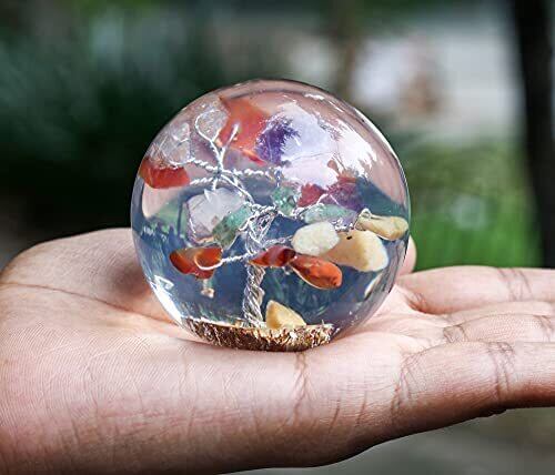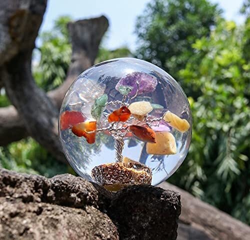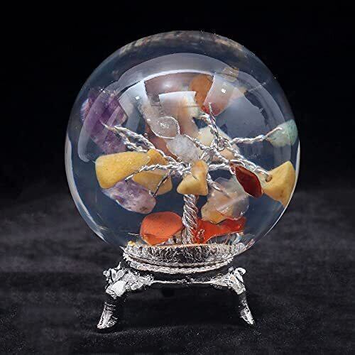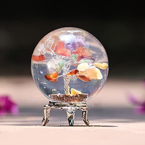 Crocon オルゴンスフィアクリスタルボールに7つのチャクラツリーを詰めてレイキヒーリング盆栽マネーツリークリスタルスフィアグッドラックホームデコレーションオフィスキッチンハロウィンデコレーションギフトサイズ50-60mm