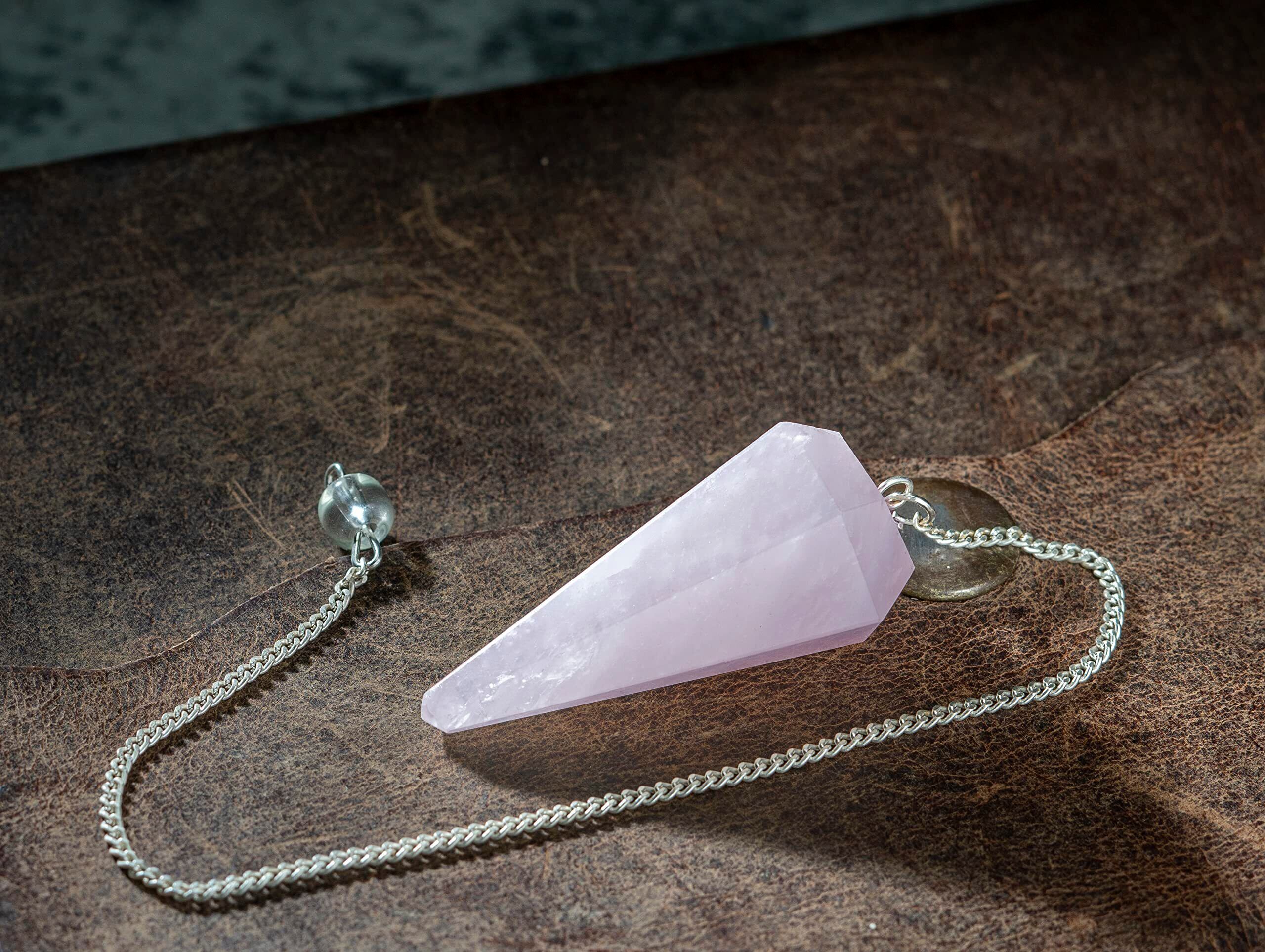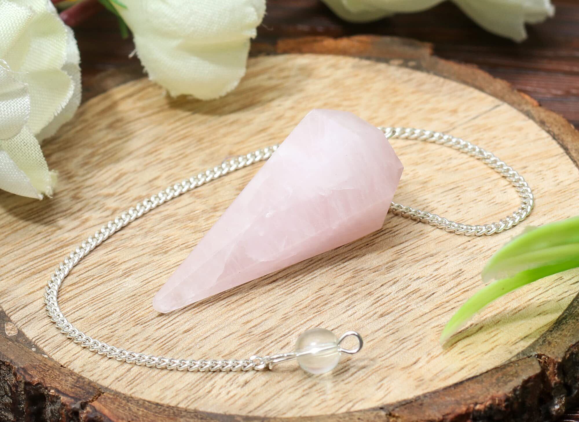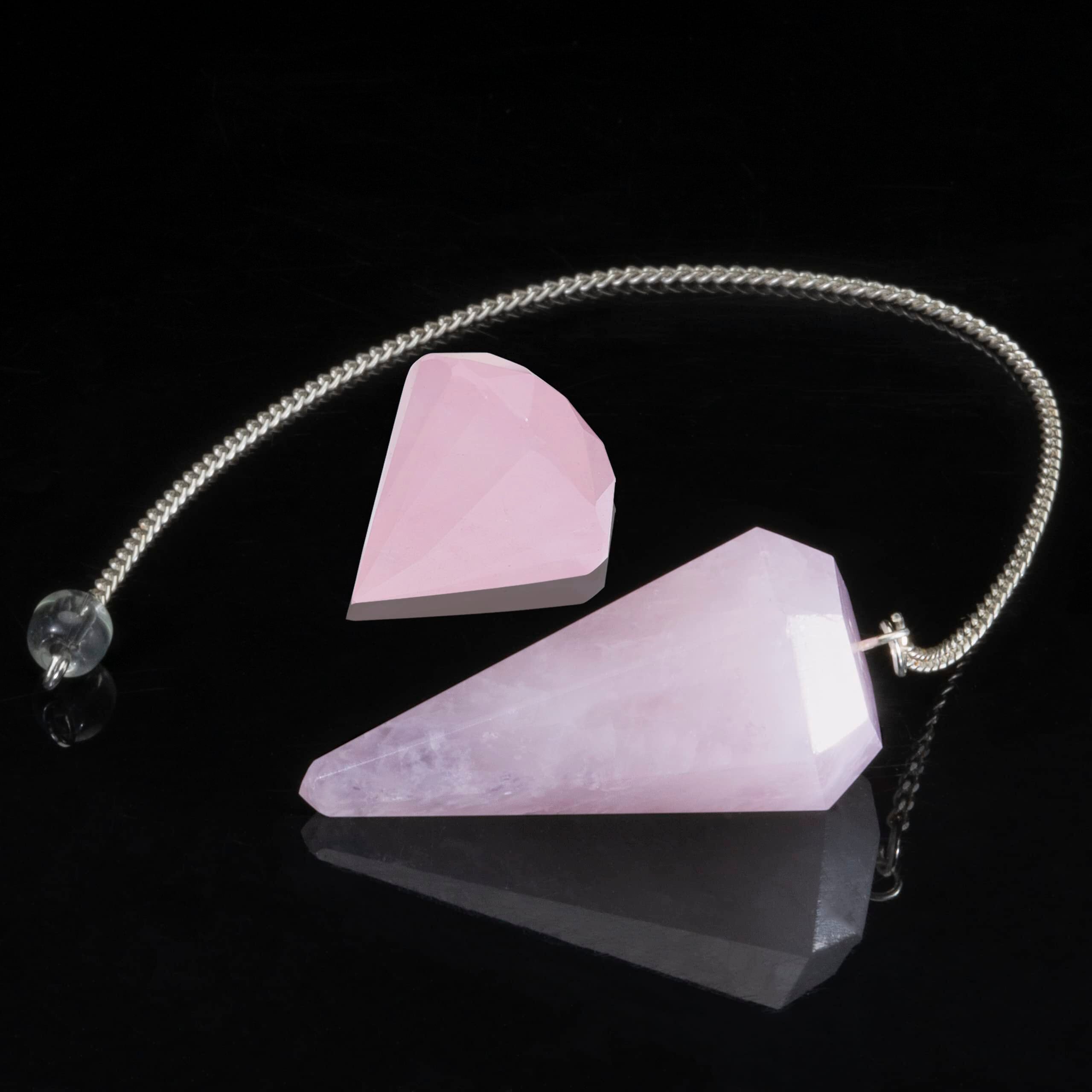 Crocon ローズクォーツ ダイヤモンド ピラミッドウェルスヘルスバスからヒーリングチャクラへ 電源保護サイズ: 1.5インチ、振り子付き。