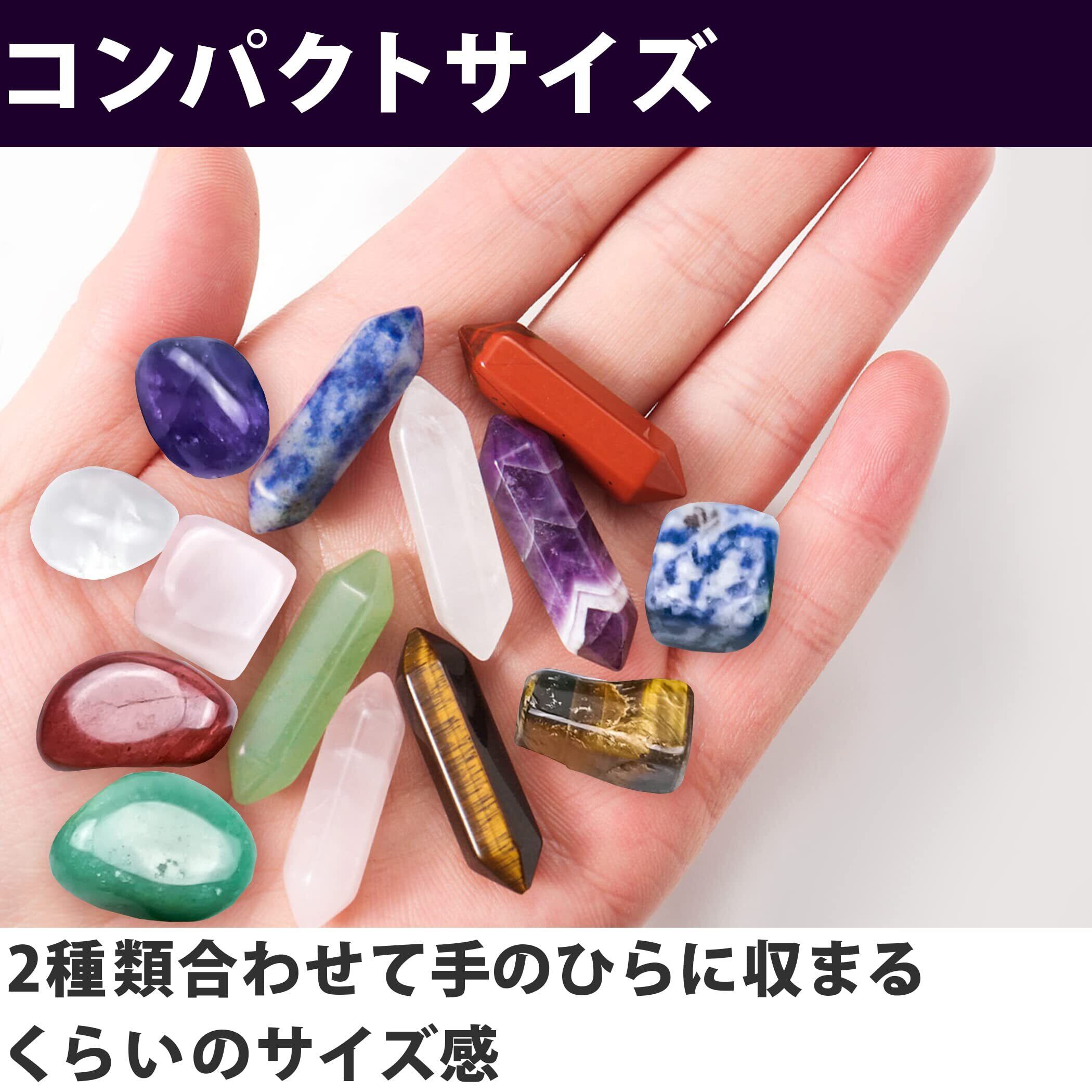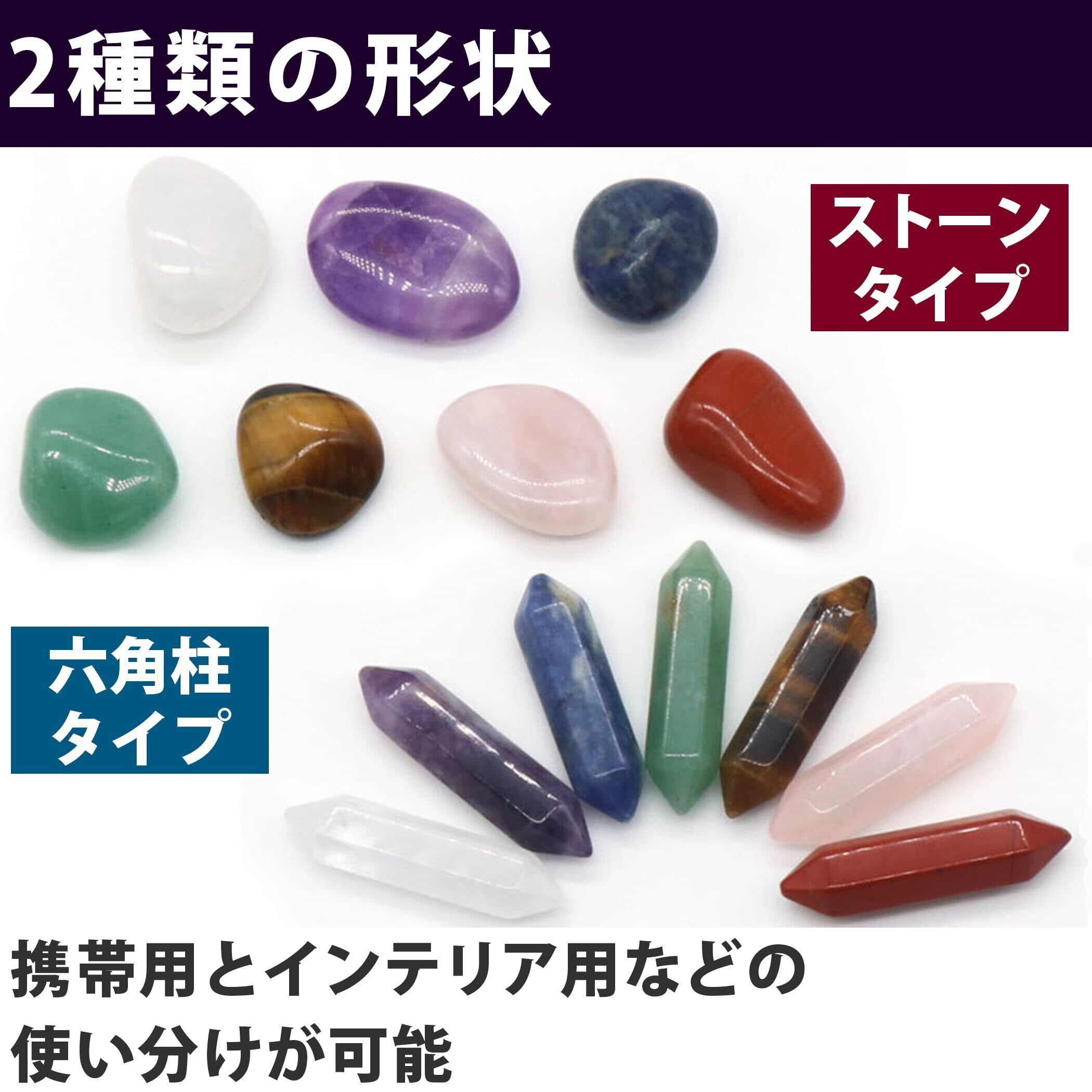 ストーンタイプと六角柱タイプの2種類:こちらの商品にはストーンタイプと六角柱タイプの2種類の形状の天然石が含まれています。携帯用やインテリア用としてお使いいただくことができます。