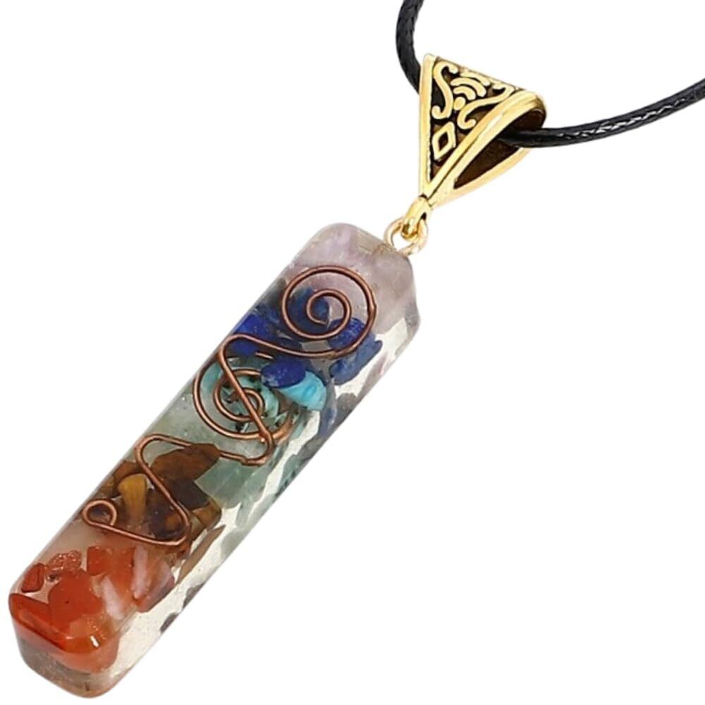 【サイズ】オルゴナイト(タテ45mm×ヨコ10mm×マチ 8mm)、 チョーカー紐(全長45cm+アジャスター5cm) 【素材】天然石、グラスファイバー樹脂