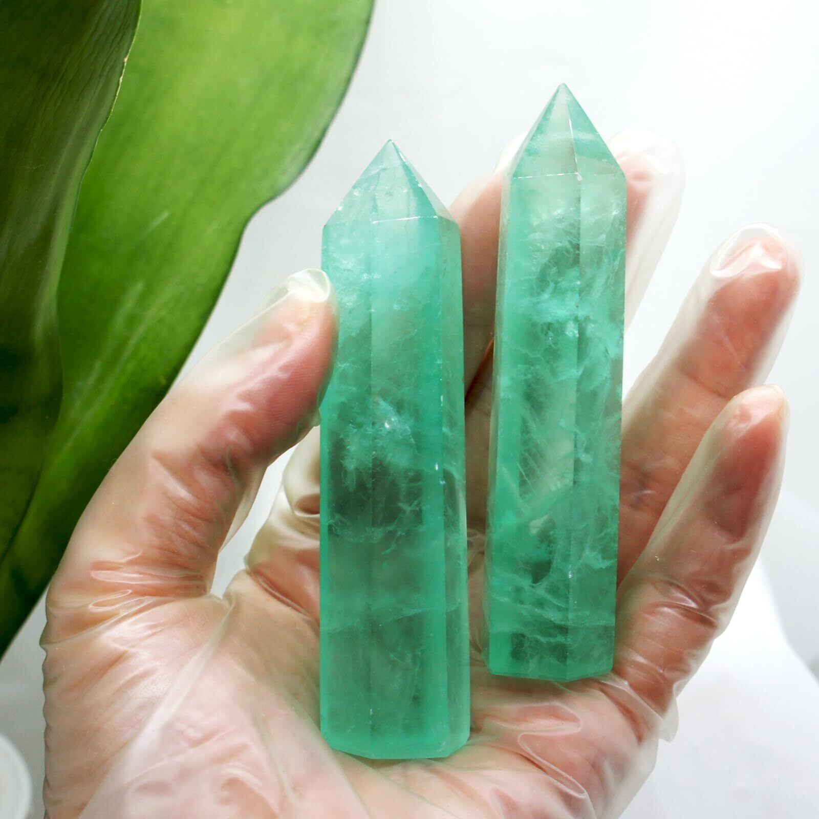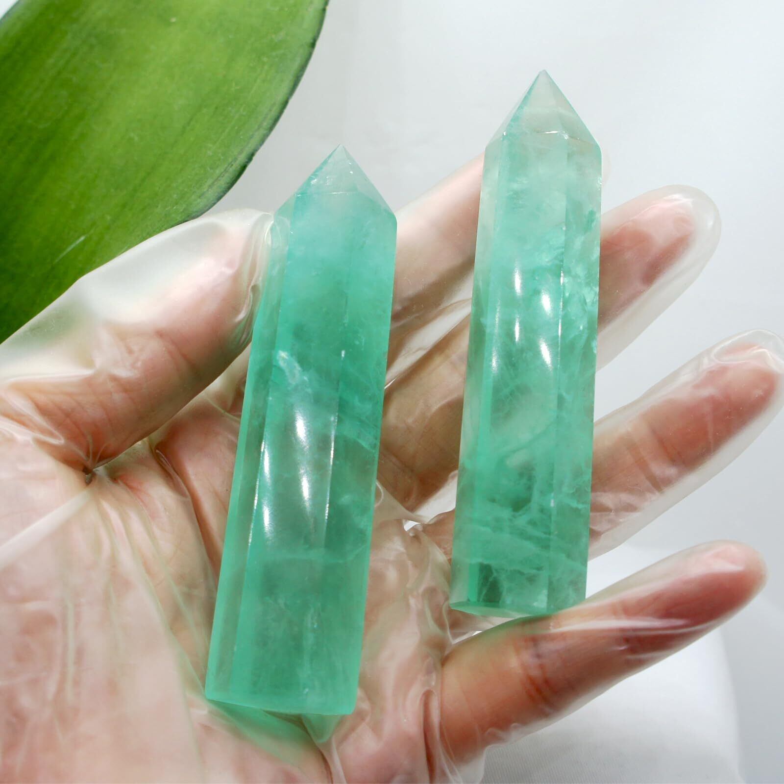 4.重さ30-50g 高さ約6.5-8.5cm 天然蛍石原石ポイント六角柱、美しいグリーン !