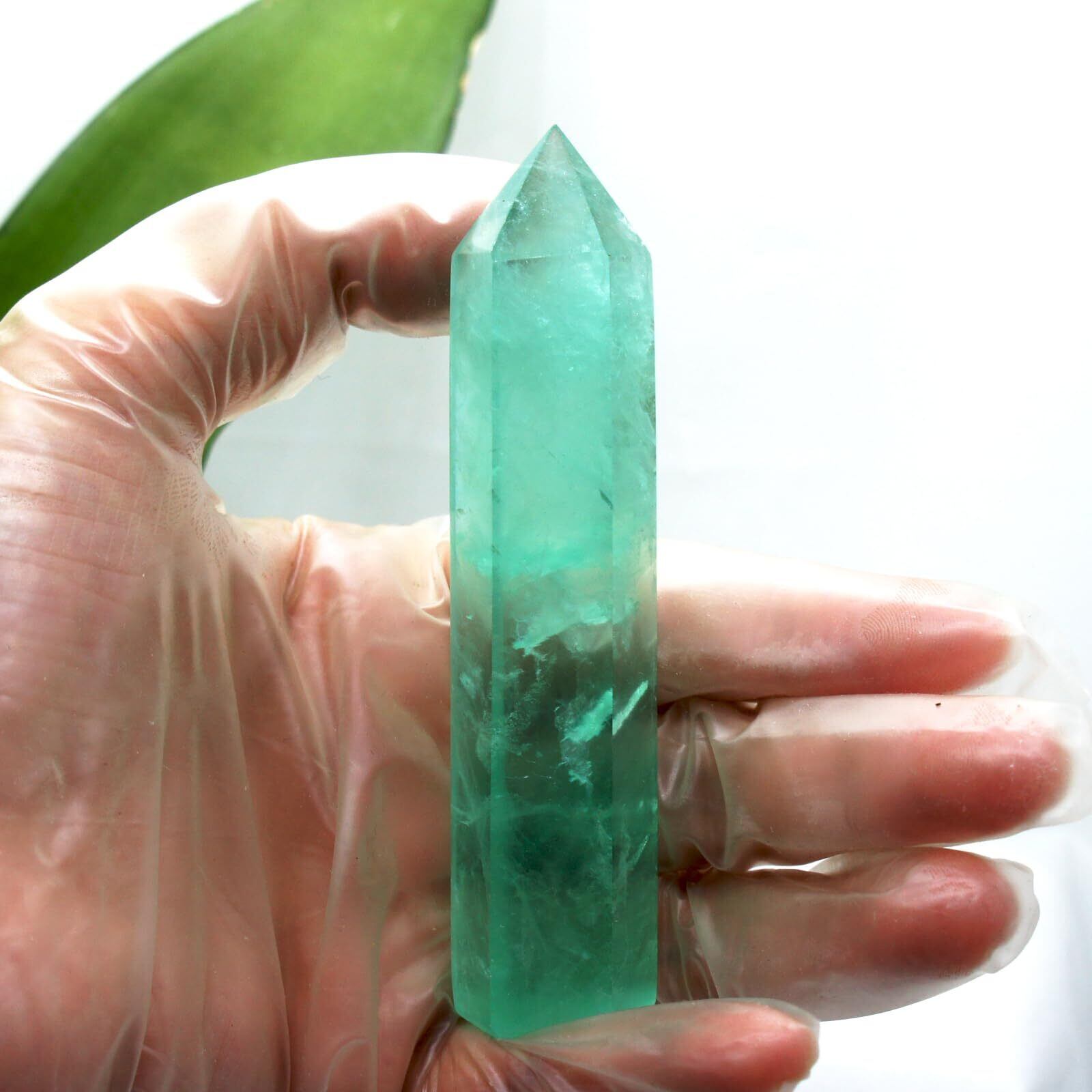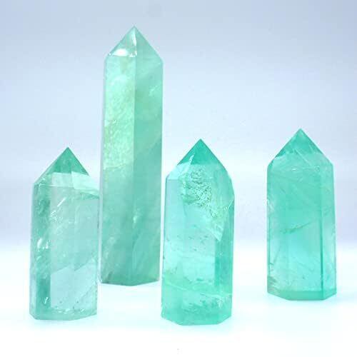 【2022最新】[POWERTONE] 天然蛍石原石ポイント六角柱 天然蛍石 フローライト 美しいグリーン 天然石 ホーム装飾石 グッズ クリスマス 新年 プレゼント ヒーリング サンキャッチャー置物インテリア 風水 (重さ30-50g 高さ約6.5-8.5cm, グリーン)