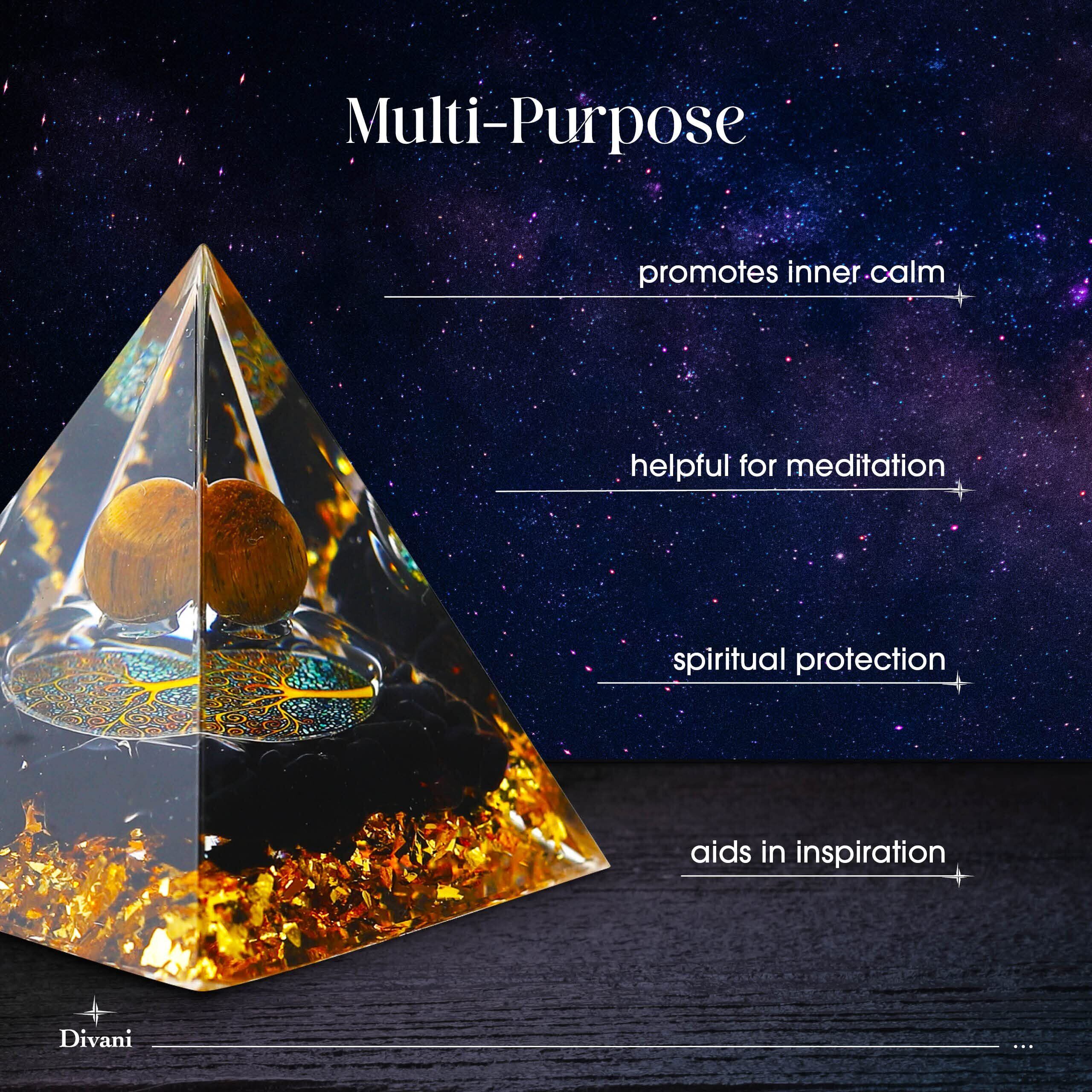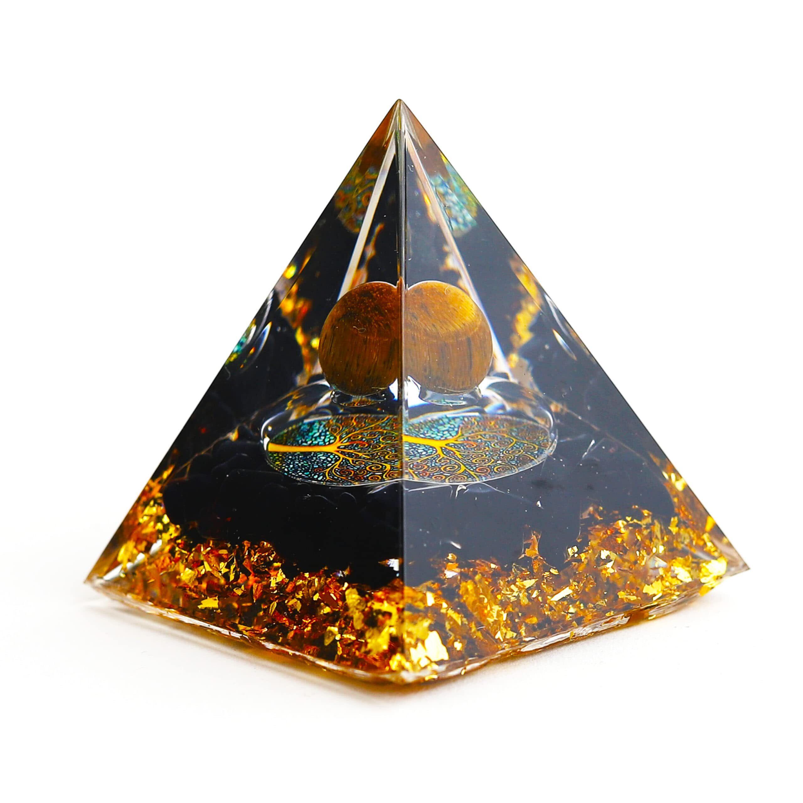 【数量限定】クリスタルオルゴンピラミッド - タイガーアイボール 生命の樹 - オーガンクリスタルエネルギータワー - ネイチャーレイキヒーリングチャクラッシュストーンジュエリー - 5cm
