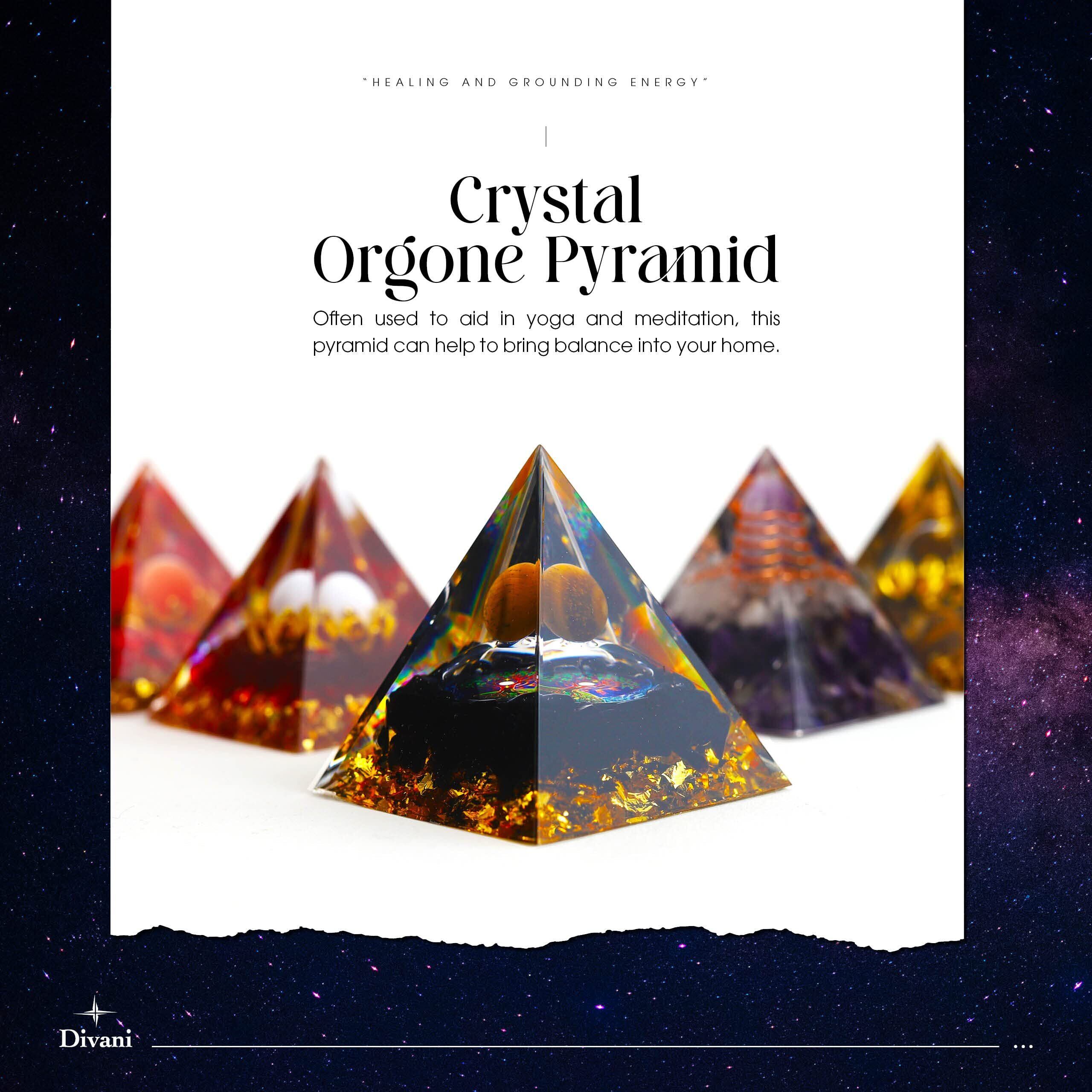 This Orgonite Crystal Pyramid has a mysterious sparkle and is a spiritual item for good luck and purification. Size:6*6cm