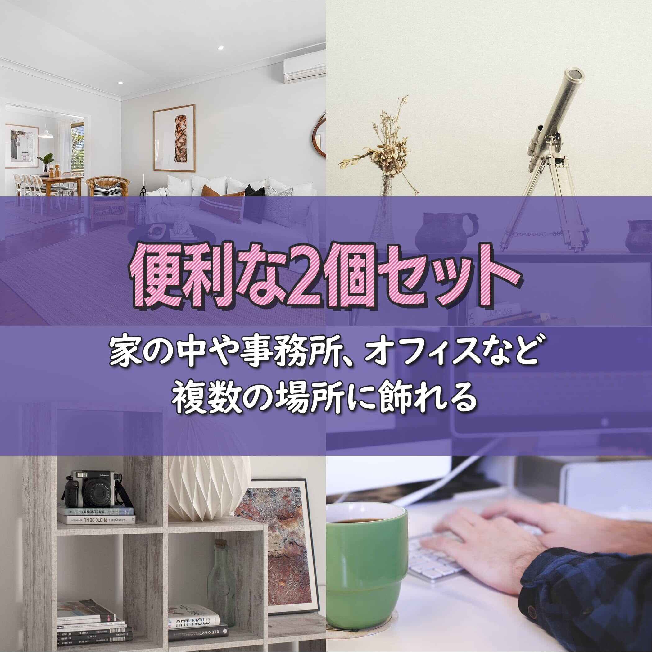 便利な2個セット:同じものが2個セットになっているため、複数の場所に飾ることができます。リビング、自室、玄関、棚の上など、家の中の複数の場所に飾れます。事務所やオフィスなど、職場に飾りたい場合にもおすすめです。