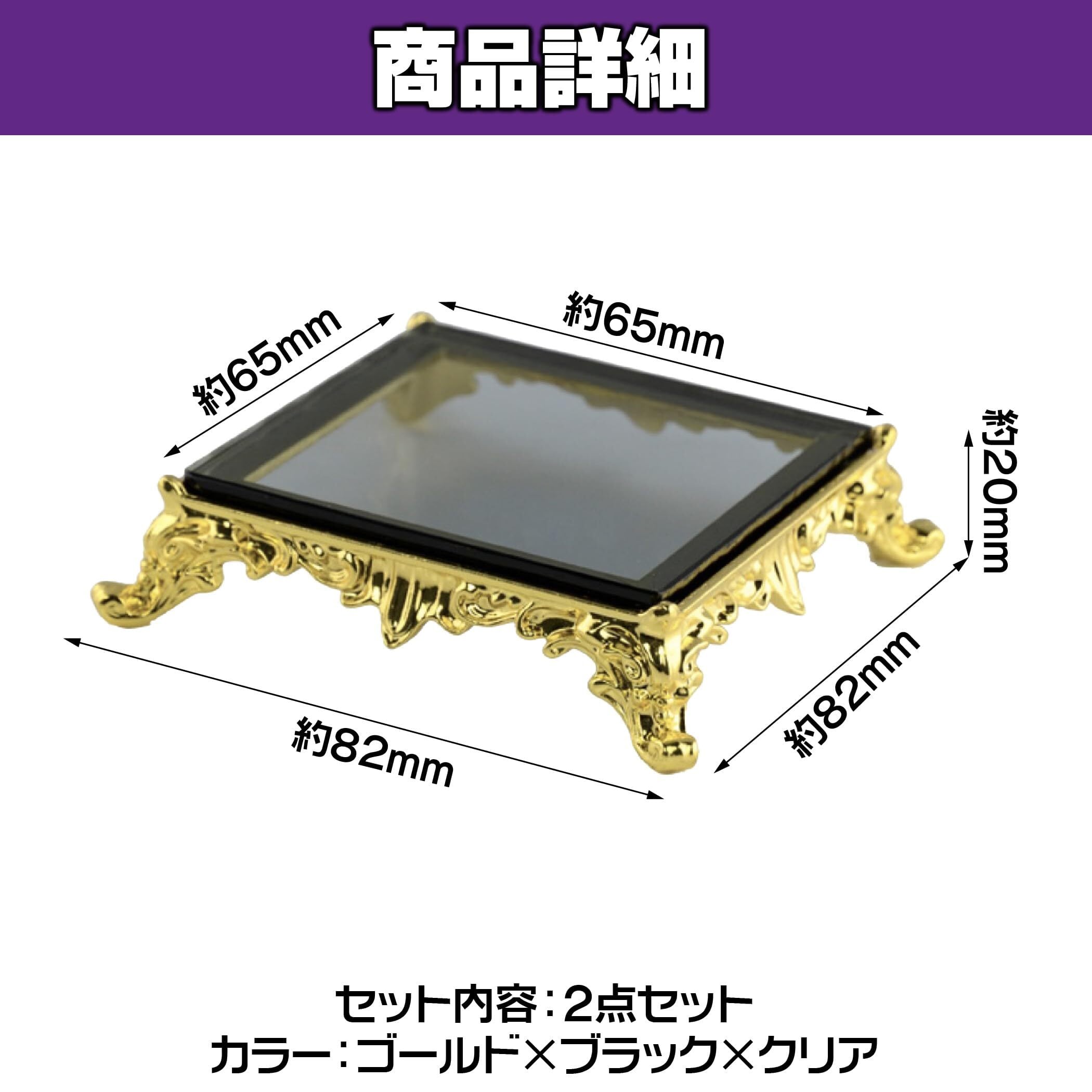 セット内容:2点セット サイズ:約82×82×20mm 台座部分のサイズ:約65×65mm カラー:ゴールド×ブラック×クリア ※モニターの環境等により、色の見え方に若干差が生じる場合がございます。