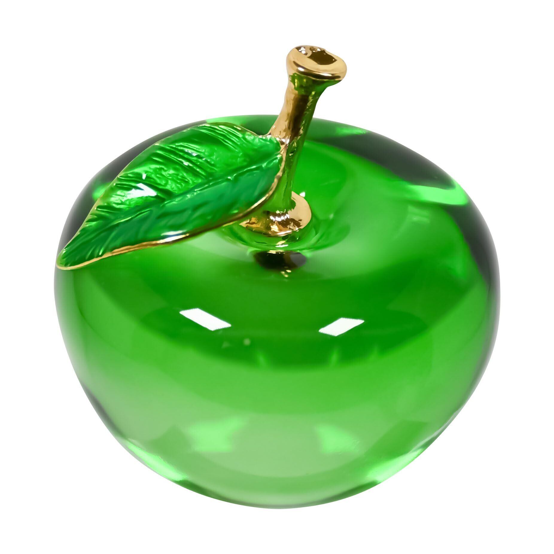 水晶 リンゴ クリスタル 金運 アップル パワーストーン 置物 林檎 風水 玄関 飾り オブジェ 5cm×5.5cm (グリーン)