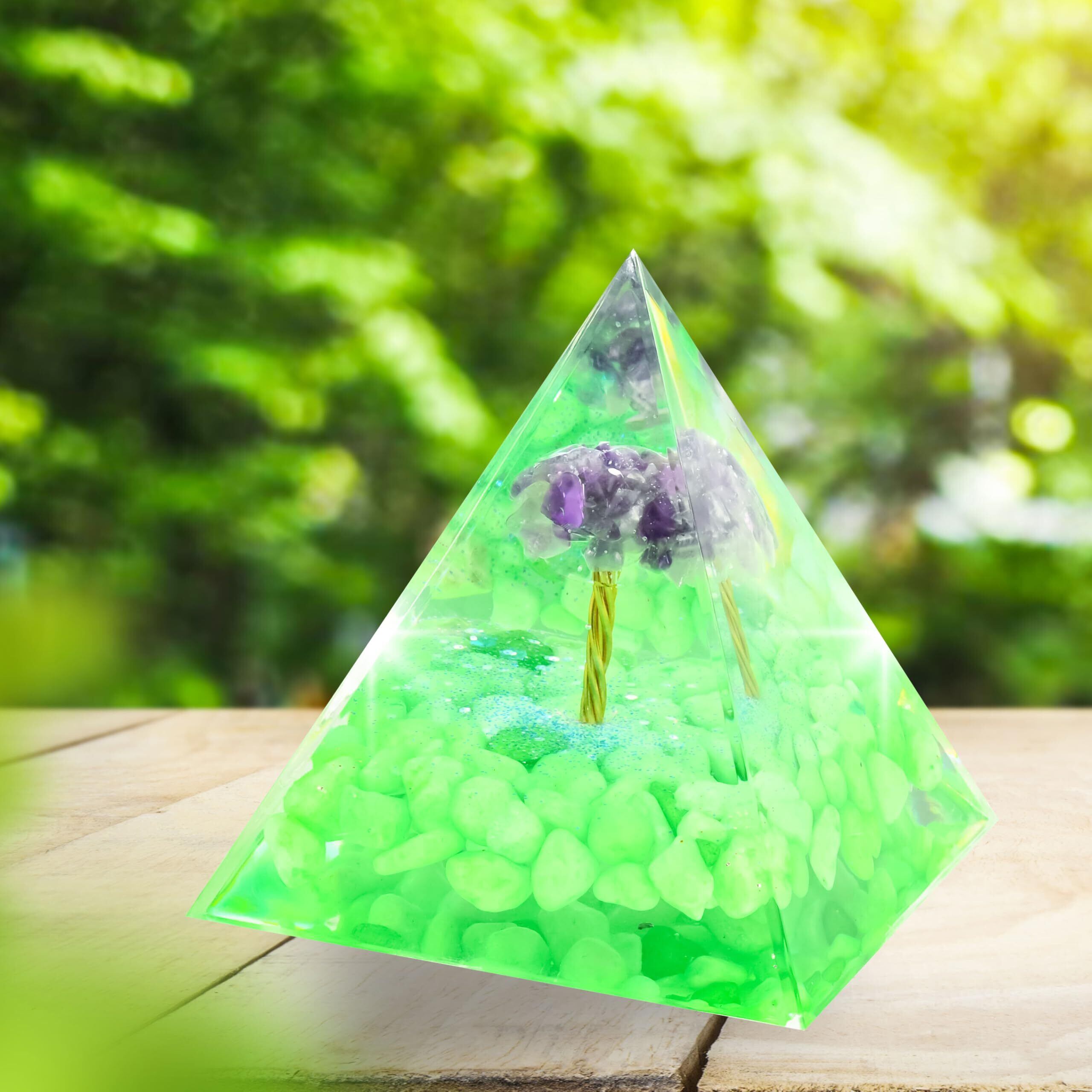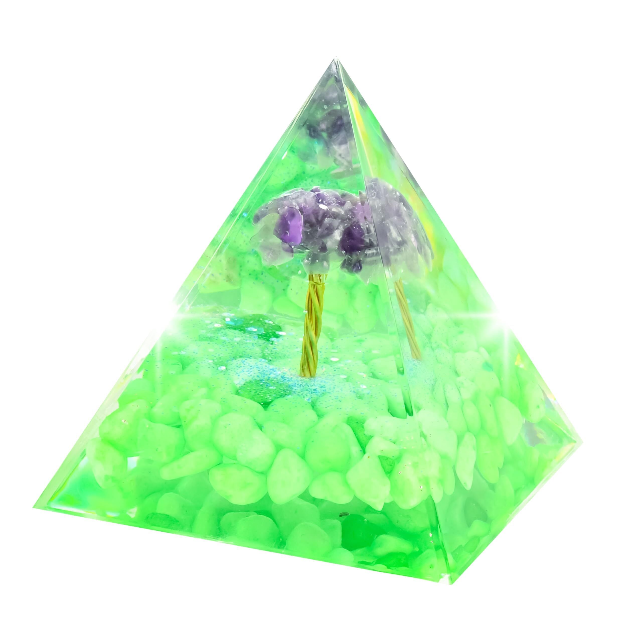 オルゴナイト クリスタル オルゴン ピラミッド ツリー 招財樹 生命の木 チャクラ エネルギータワー ネイチャー レイキ ヒーリング クラッシュストーン オブジェ 6cm×6cm (30)