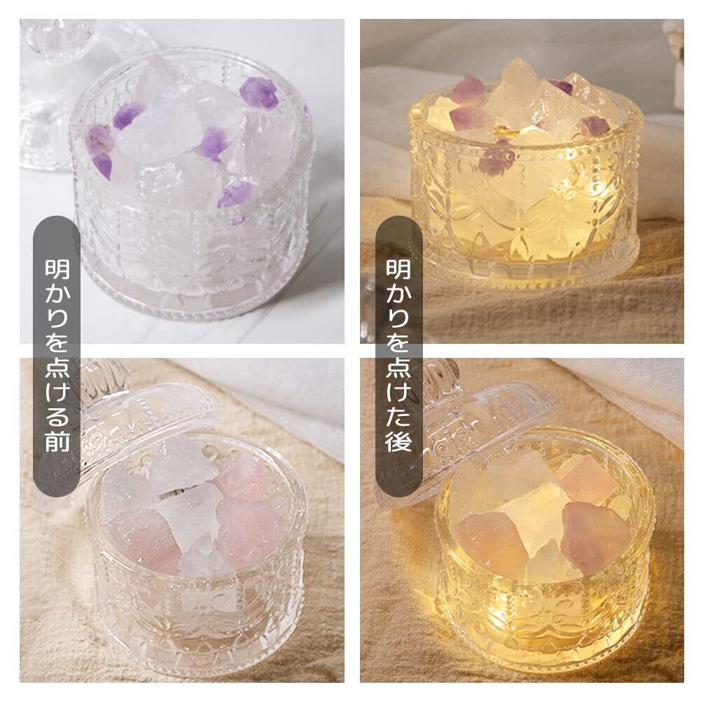 ◆仕様:アロマ用ミックス天然クリスタルストーンランプ、◆素材:ガラス、Aグレード天然のクリスタル(高い光透過率)、木。ランプ台座は厚くてより安定し、ガラス容器は絶妙なパターン付き、USBプラグなし、エッセンシャルオイル無し。◆サイズ・重量:ガラス容器:直径*高約8.5*11cm。クリスタルストーン:200-300g。◆スタイル:ホワイト+アメジスト、◆パッケージ:ホワイトクリスタルストーン≧12個、アメジストストーン8個+ガラス容器+USBランプ台座。