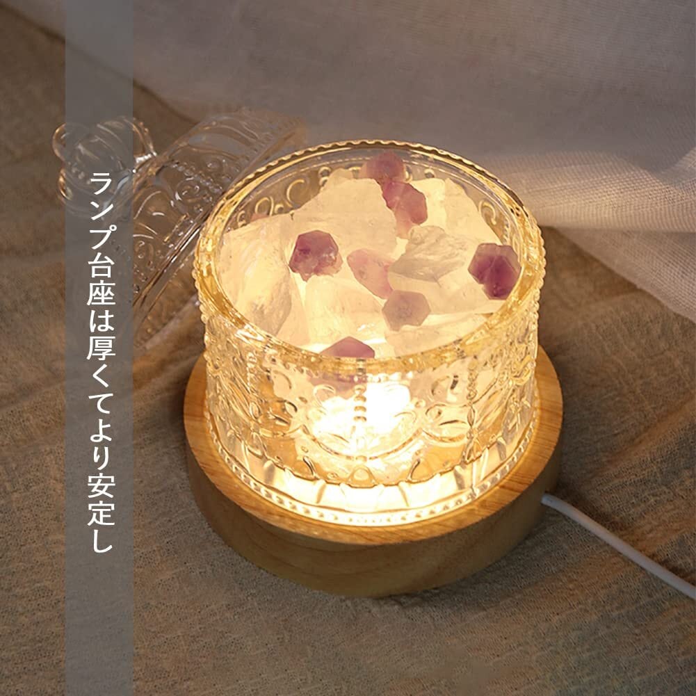 HIGHAWKアロマランプ ベッドサイド ライト クリスタル LED ガラス瓶 睡眠ライト 蓋付き ランプ usb アロマ用 照明 空気浄化 ランプ台座(ホワイト+アメジスト)