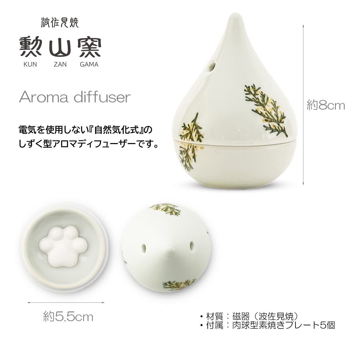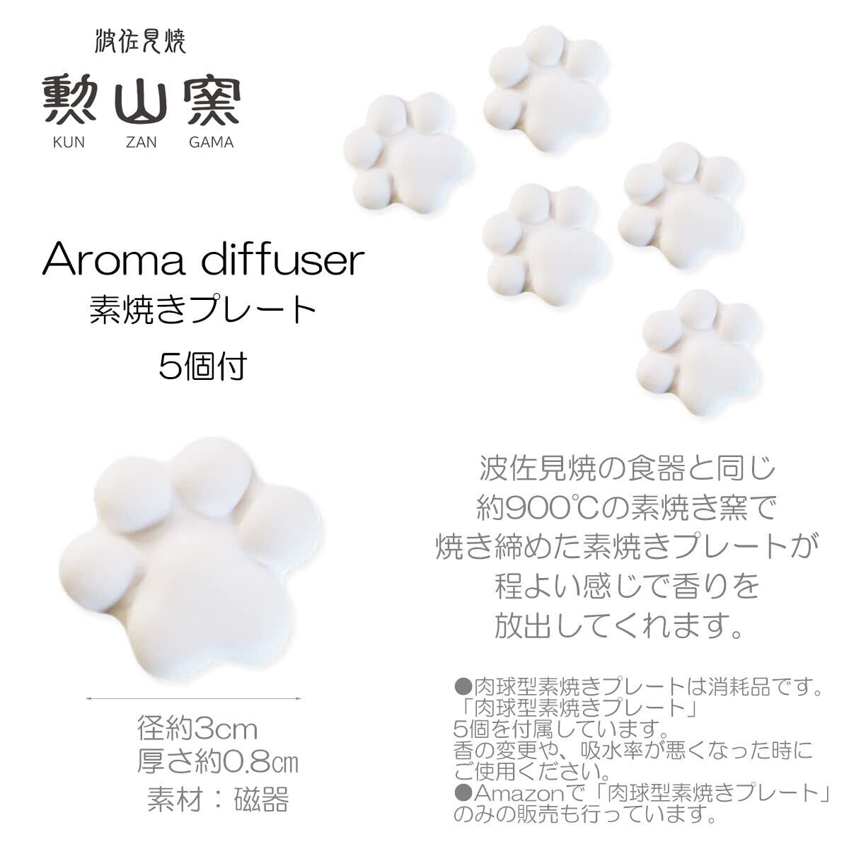 ジェイキッチンズ(J-kitchens) 勲山窯 アロマディフューザー 波佐見焼 日本製 5.5x8cm 肉球型 アロマストーン (アロマ プレート)5個付 ローズマリー