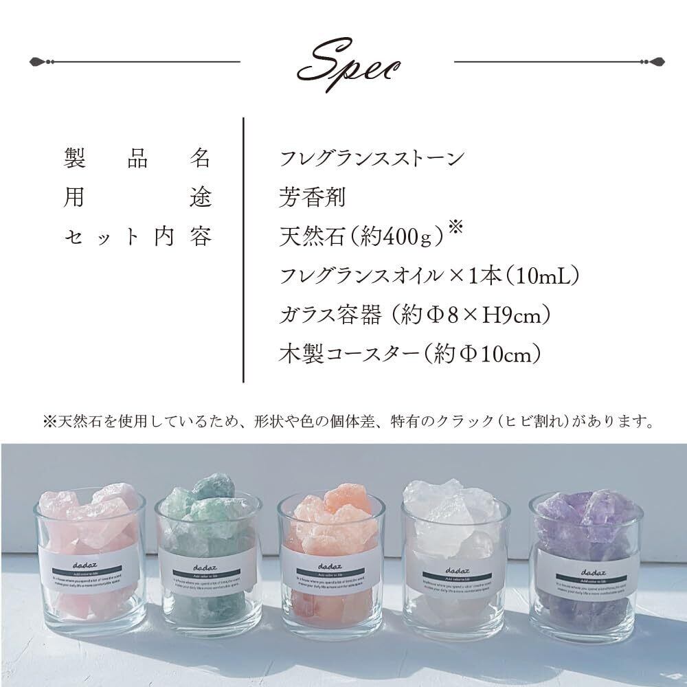 【セット内容】 天然石 (約400g)/ フレグランスオイル 1本(約10ml)/ ガラス容器 (約Φ8×H9cm)/ コースター / 巾着袋