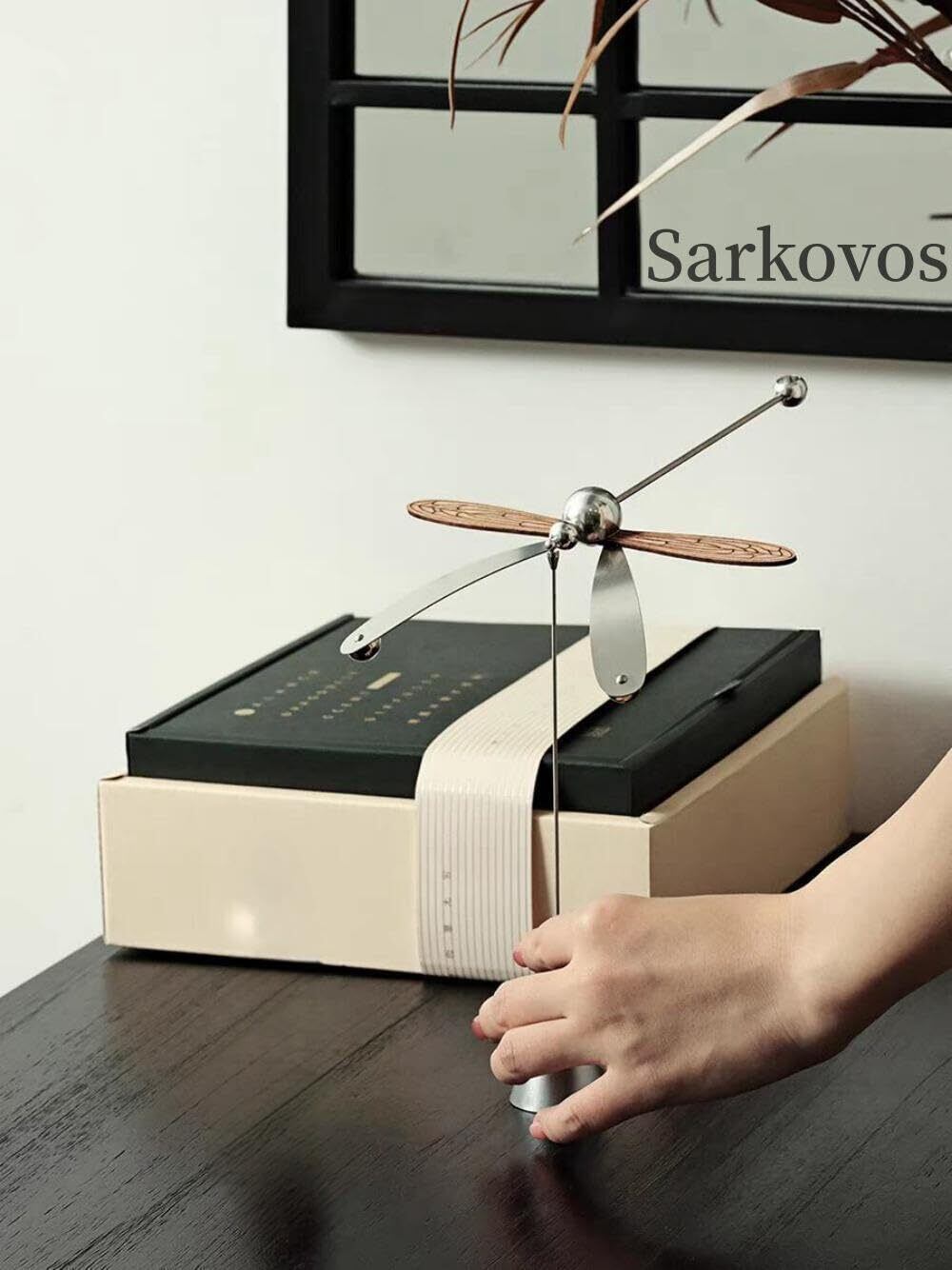 【2022最新】Sarkovosトンボ木製アロマ 天然ウッドアロマディフューザー360 ° 回転プレミアムエッセンシャルオイルディフューザー,アロマセラピーディフューザーギフト,バレンタインデーギフト,オフィス装飾 抗重力バランスのハイエンド工芸品(銀色) | paghag