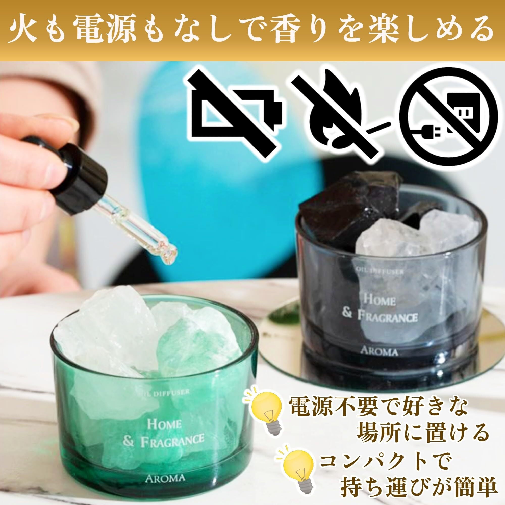 【手軽に使えて、どこでも長く楽しめる】火や電源を必要としないため、玄関、寝室、オフィスなど、コンセントの位置を気にせずお好きな場所に自由に設置できます。使用後は天然石を乾いた布で軽く拭くだけで清潔に保て、お手入れも簡単です。オイルの香りが薄れてきた際は、数滴追加するだけで再び心地よい香りが広がり、繰り返し使用できます。経済的で長く楽しめるアイテムとして、日常のさりげない癒しをお届けします。
