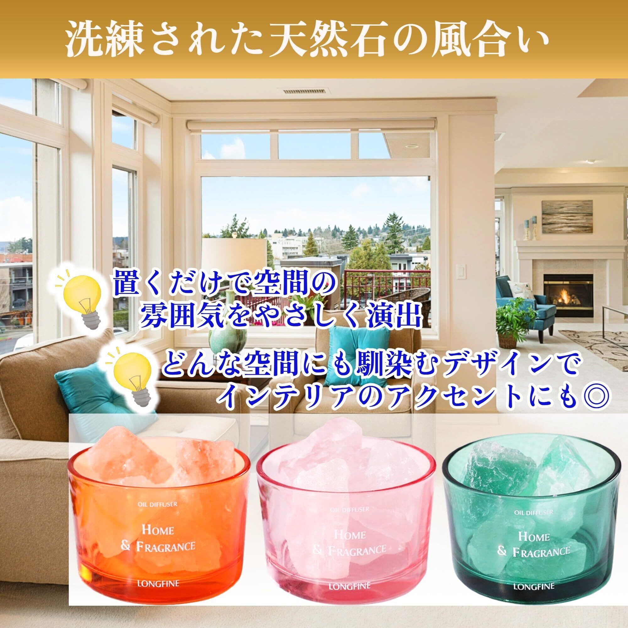 【インテリアに溶け込む洗練デザイン】シンプルでスタイリッシュなデザインは、ナチュラルテイストからモダンな空間まで、さまざまなインテリアと調和します。天然石はそれぞれ異なる質感とカラーが楽しめ、専用容器との一体感あるデザインが、お部屋の雰囲気に自然と溶け込みます。置くだけで上品なアクセントとなり、特別な空間を演出します。