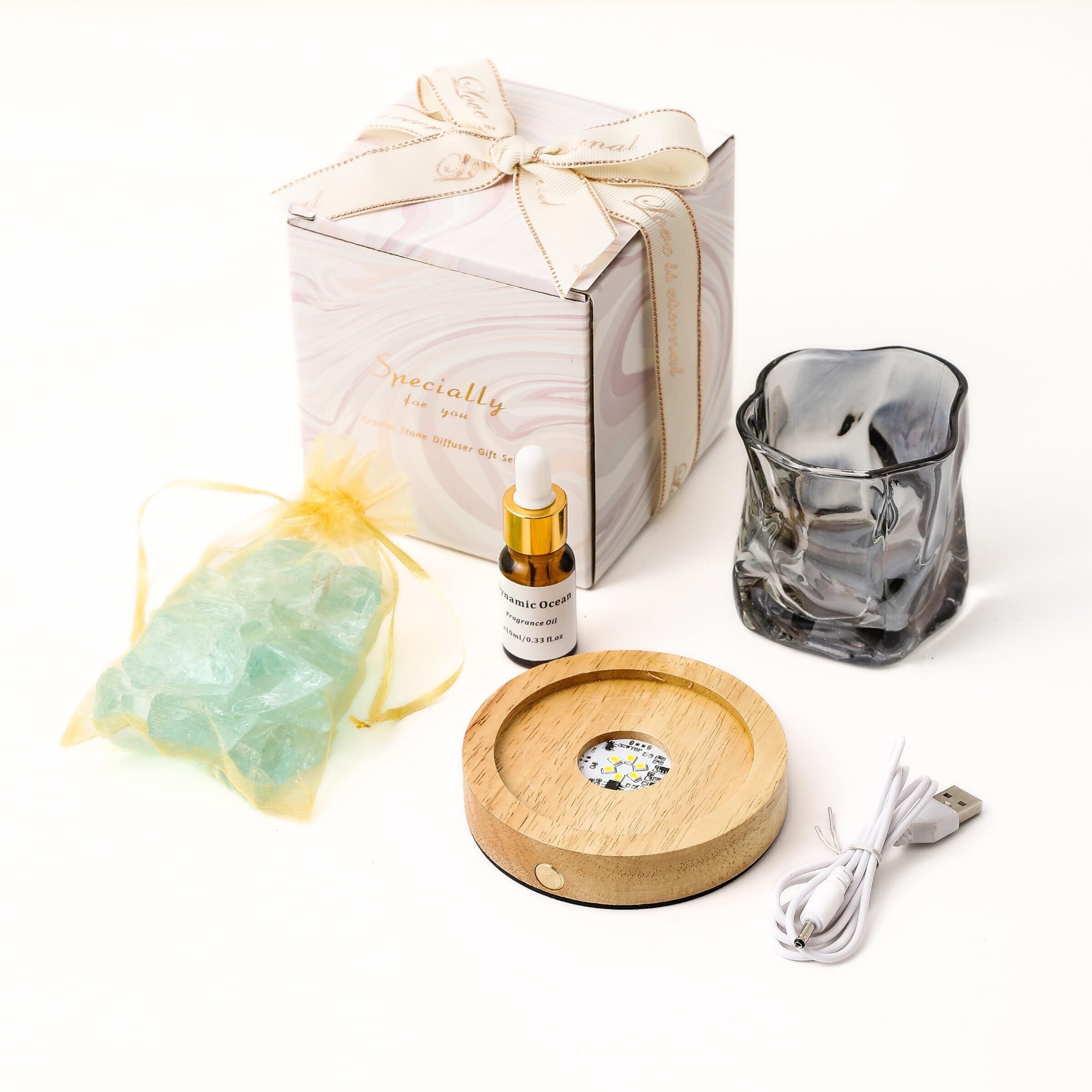 絶妙なギフトボックス包装、クリスタルストーン+エッセンシャルオイル付き、タッチスイッチ式充電式ランプホルダー
