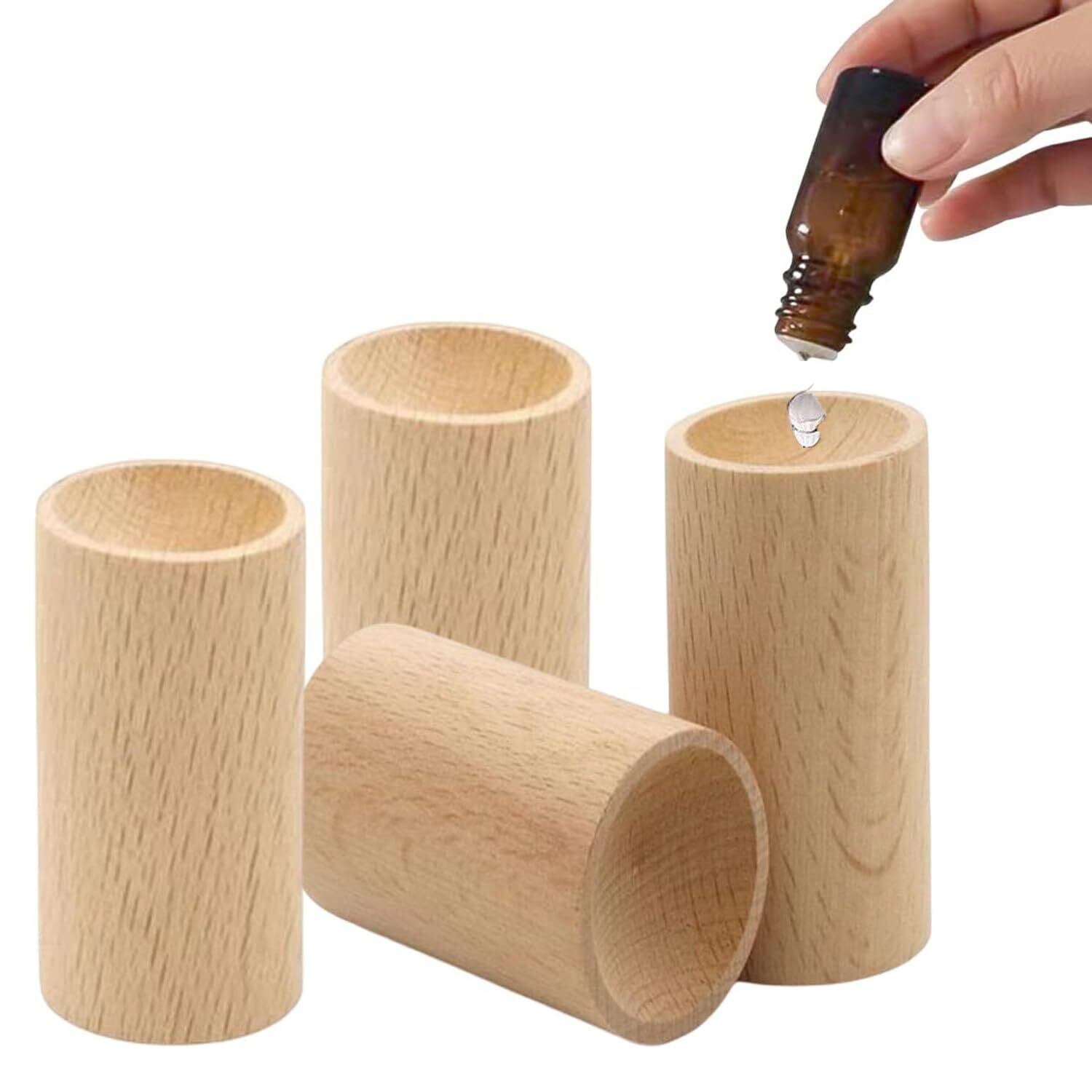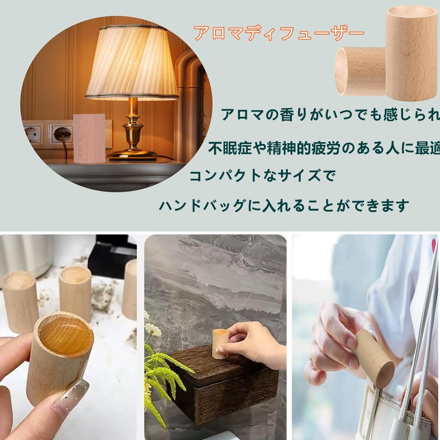 SensaBliss アロマストーン 木製 アロマディッシュ 4個セット アロマディフューザー 車 木目 置き型消臭 ポータブル 車載 安眠 瞑想 寝室 デスク トイレ用 芳香剤 天然木 アロマオイル アロマウッド 無垢 水無し (A 円柱状 ブナ材)
